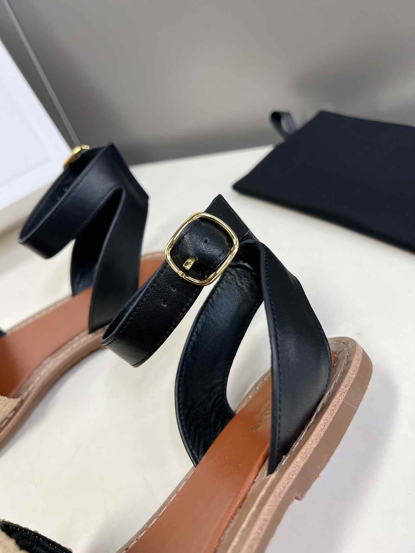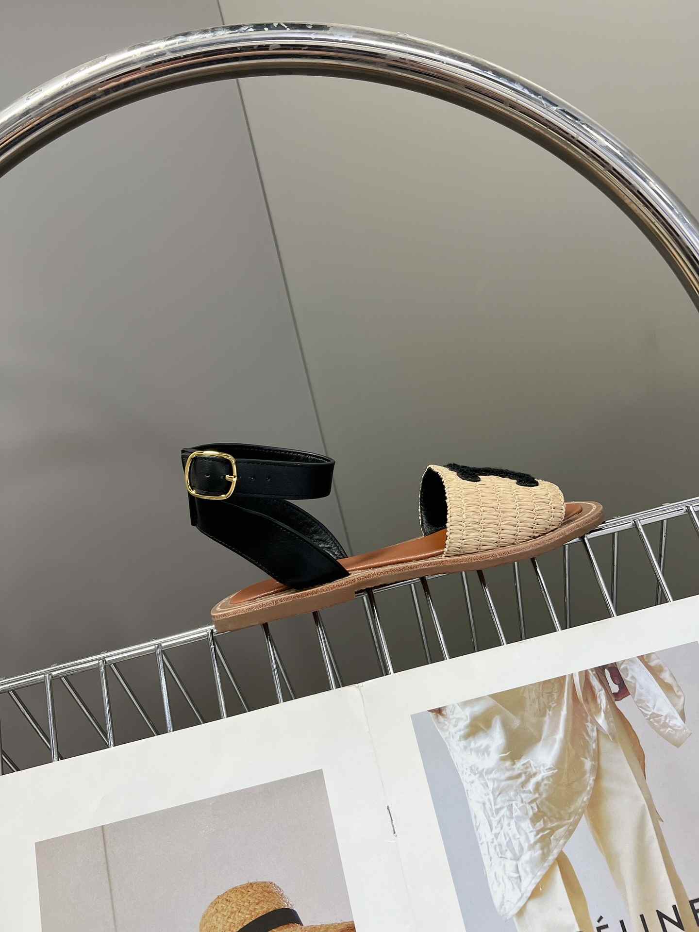 Celine Lympia Flat Strap Sandal In Raffia Black For Women 352402248C.02BL