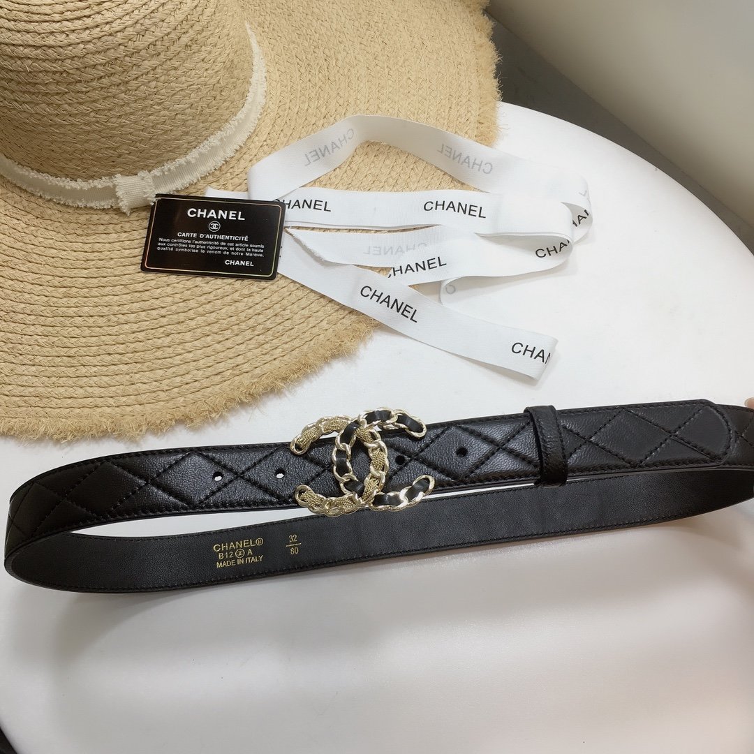 Buckle Logo Chanel Gold-Black color hardware Can be worn as a hip or waist belt. Sizing will differ based on where the belt is worn, please refer to the size guide to find your size.