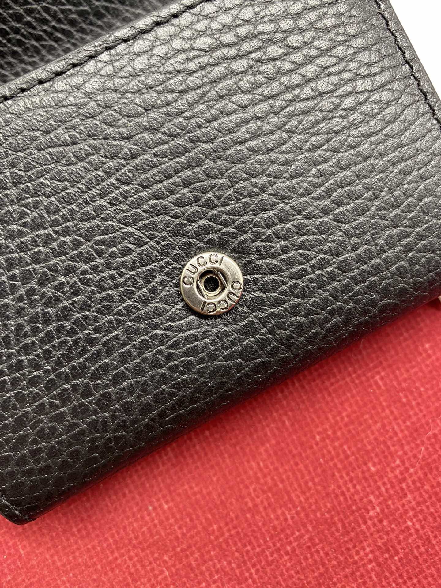 Tiger head with crystals Palladium-toned hardware Attached key ring that can attach to a separate bag Chain shoulder strap Pin closure with side release The Gucci card case wallet will fit inside this product