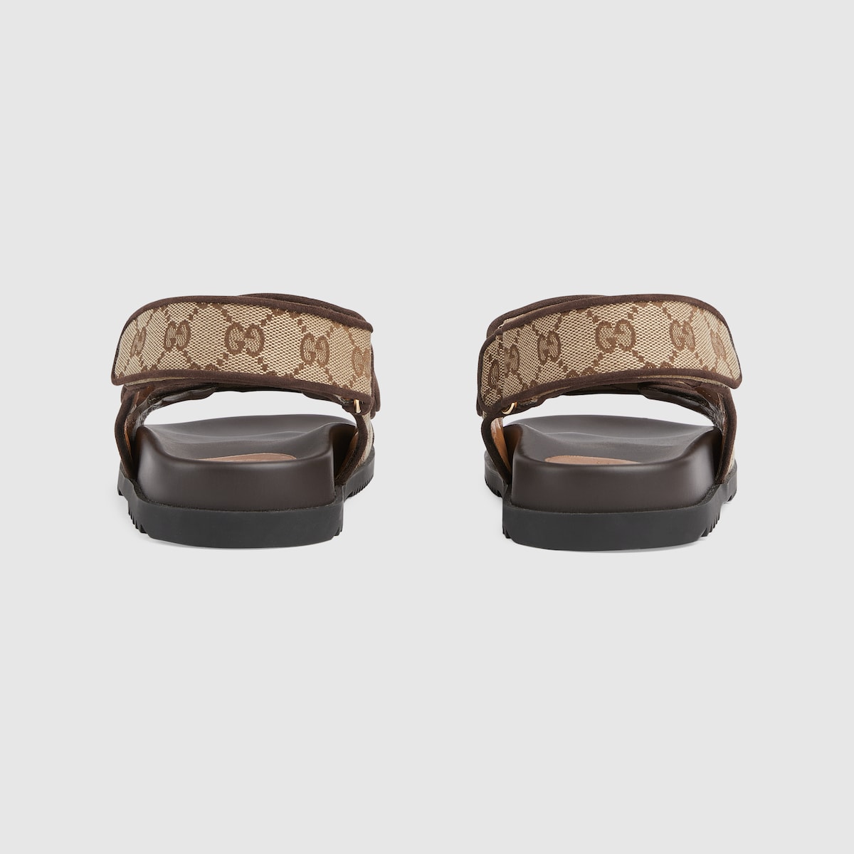 Inspired by the summer spirit and beach clubs on the Italian coast, this item is part of Gucci Lido. Lending a contemporary and sporty touch, these flat sandals with velcro straps offer all-day ease. Crafted from beige and ebony GG canvas, the accessory is defined by a delicate Double G hardware on the upper band.