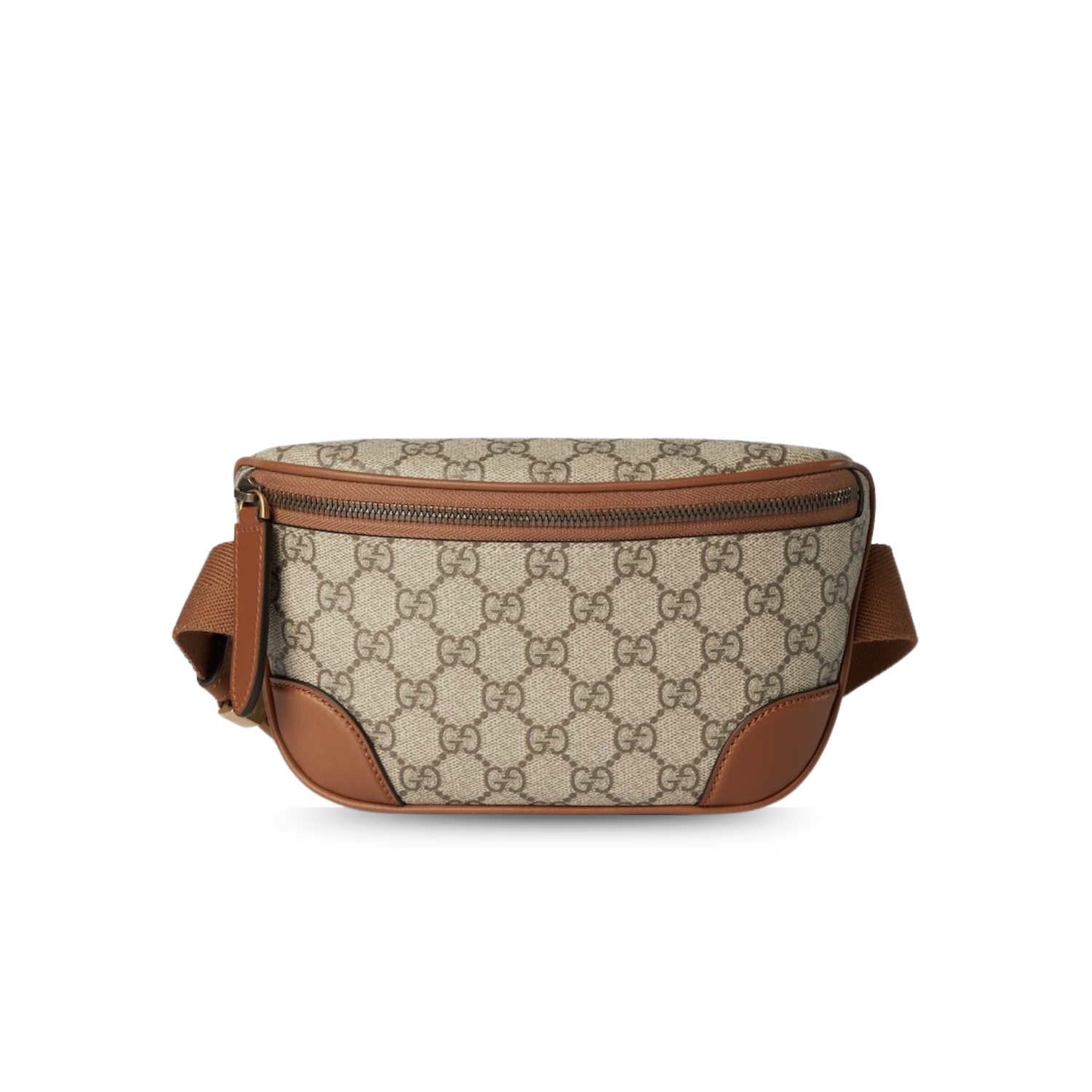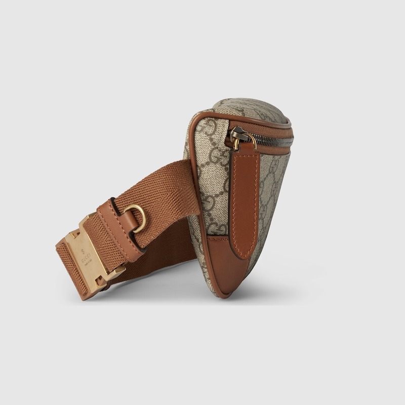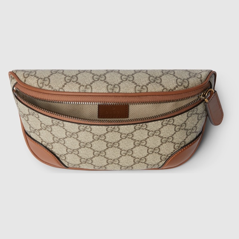 The new GG Emblem collection for men's travel reinterprets the House’s history of elegance and craftsmanship. This belt bag is crafted from the new beige and dark brown GG Monogram coated fabric and features an open pocket and an outside D-ring to attach accessories. Size: 9.1 x 4.9 x 2.4 inches / 23 x 12.5 x 6 cm (Length x Height x Depth)
