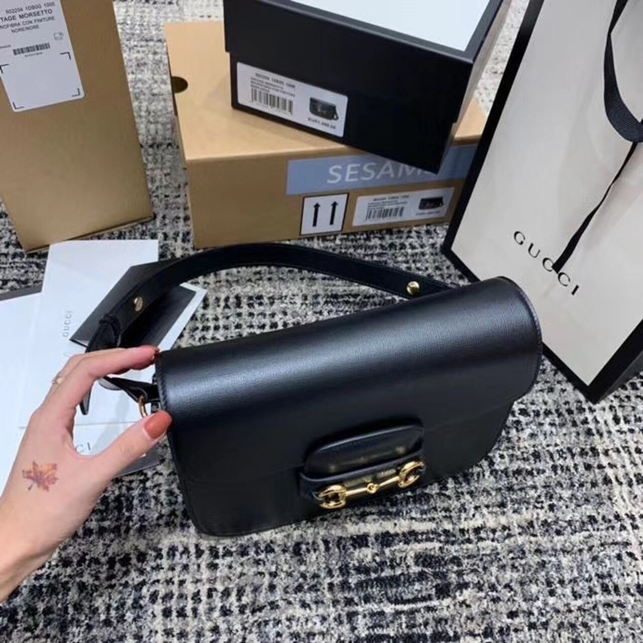 Gucci Horsebit 1955 Shoulder Bag Black 602204 1DB0G 1000