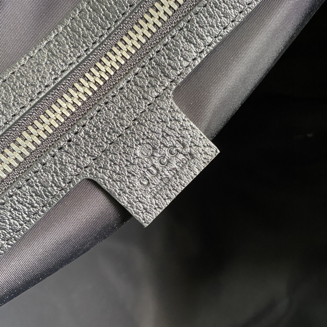 Black GG nylon made from ECONYL® a nylon fabric sourced from regenerated materials that can be recycled and recreated, aiding in decreasing its ecological footprint Black trims made from tanned through an alternative metal or chrome free tanning process, reducing the environmental footprint compared to traditional methods Palladium-toned metal hardware made from recycled brass alloys with nickel-free finishes Ribbon trims, cords and plastic buckles made from recycled materials Sewn using recycled polyester thread Regenerated nylon lining This item will come with a FSC-certified recycled gift box, shipped flat, and recycled nylon flannel dust bag. Each Gucci Off The Grid product will ship with a dedicated booklet detailing the collection, printed on FSC-certified recycled paper. Interior: 2 zip pockets