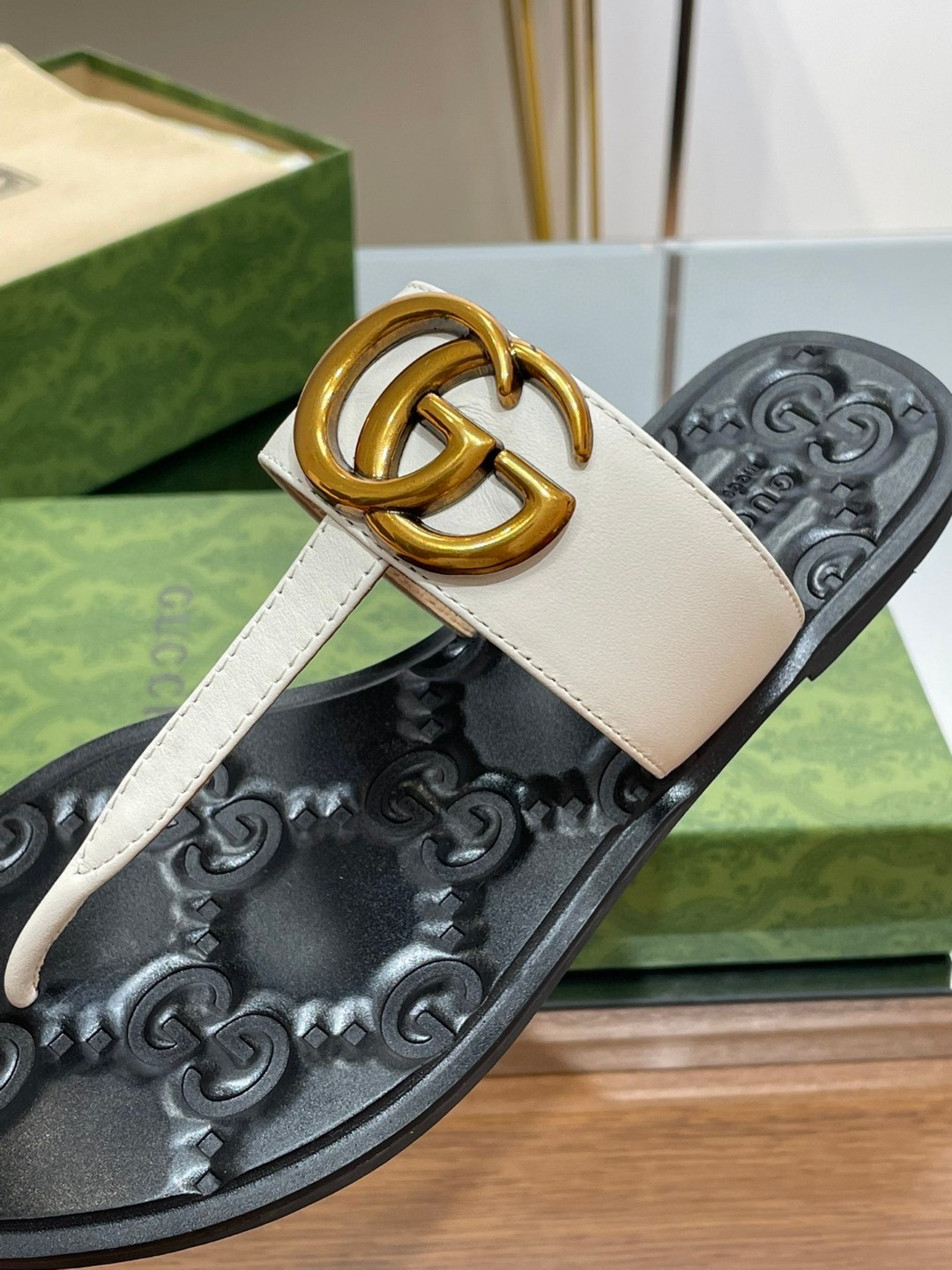 Thong Sandal With Double G use Gaining notoriety in the 1970s, the emblematic Interlocking G logo is representative of founder Guccio Gucci's initials and has since been reworked in a variety of forms and interpretations.