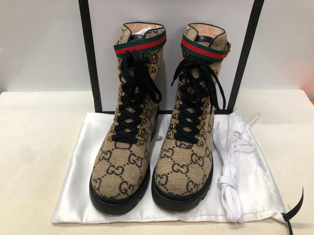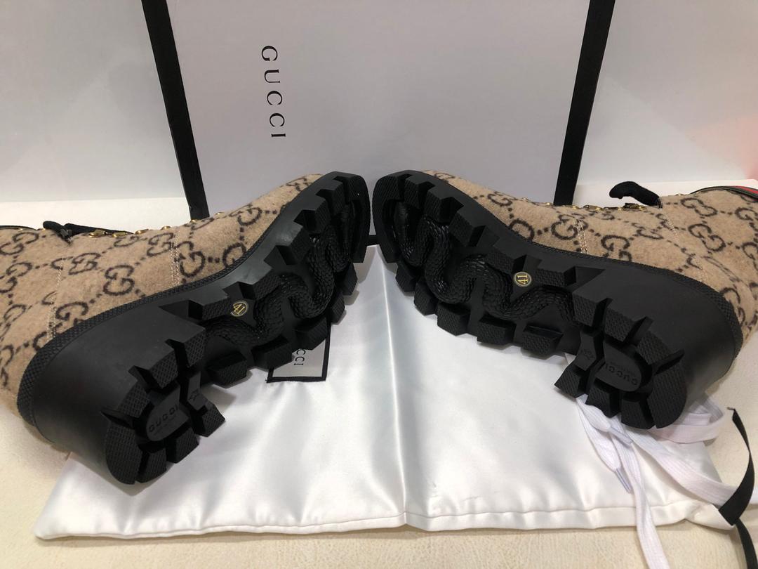 Beige/Ebony Beige and ebony maxi GG canvas with black details Women's Lace-up and ankle zip closure Low heel