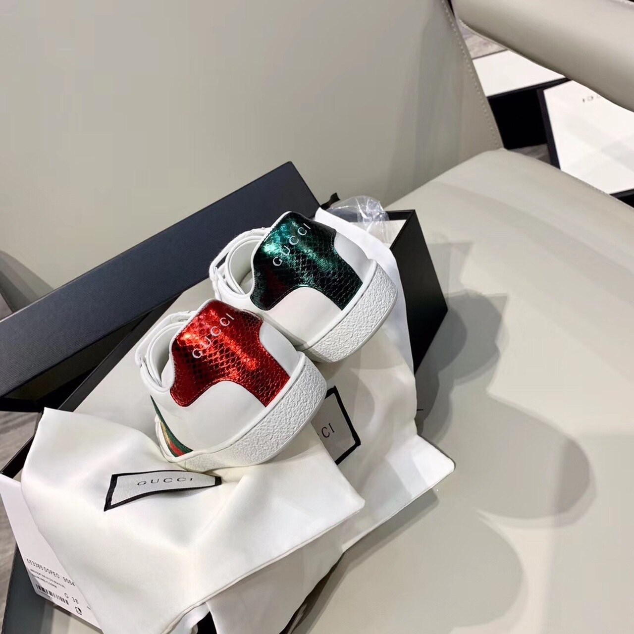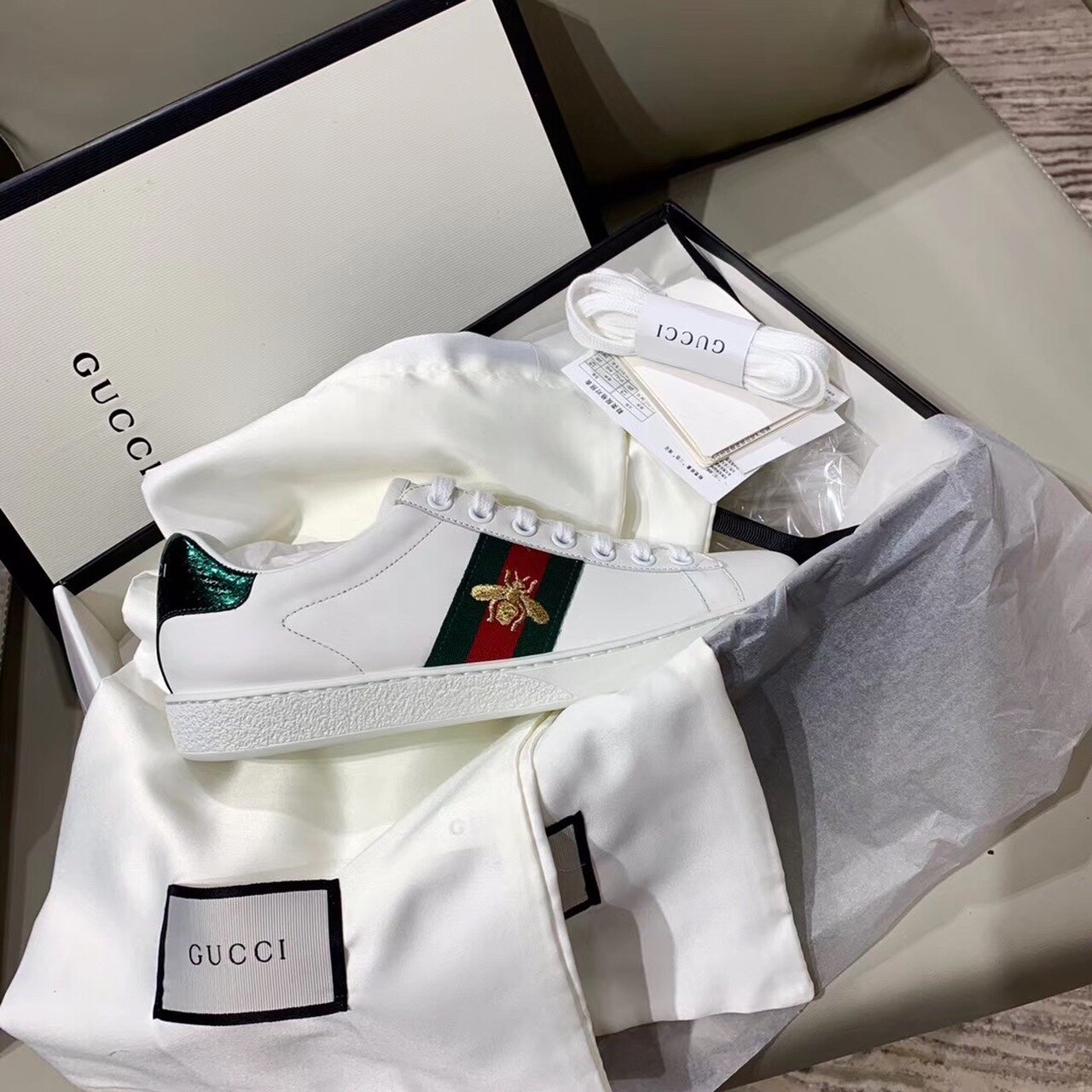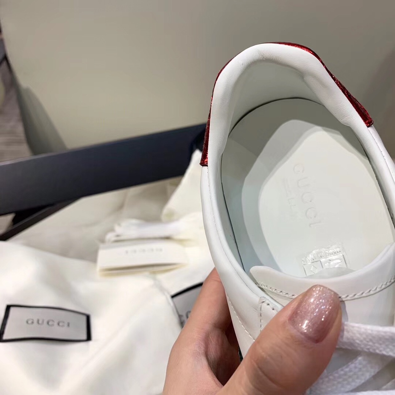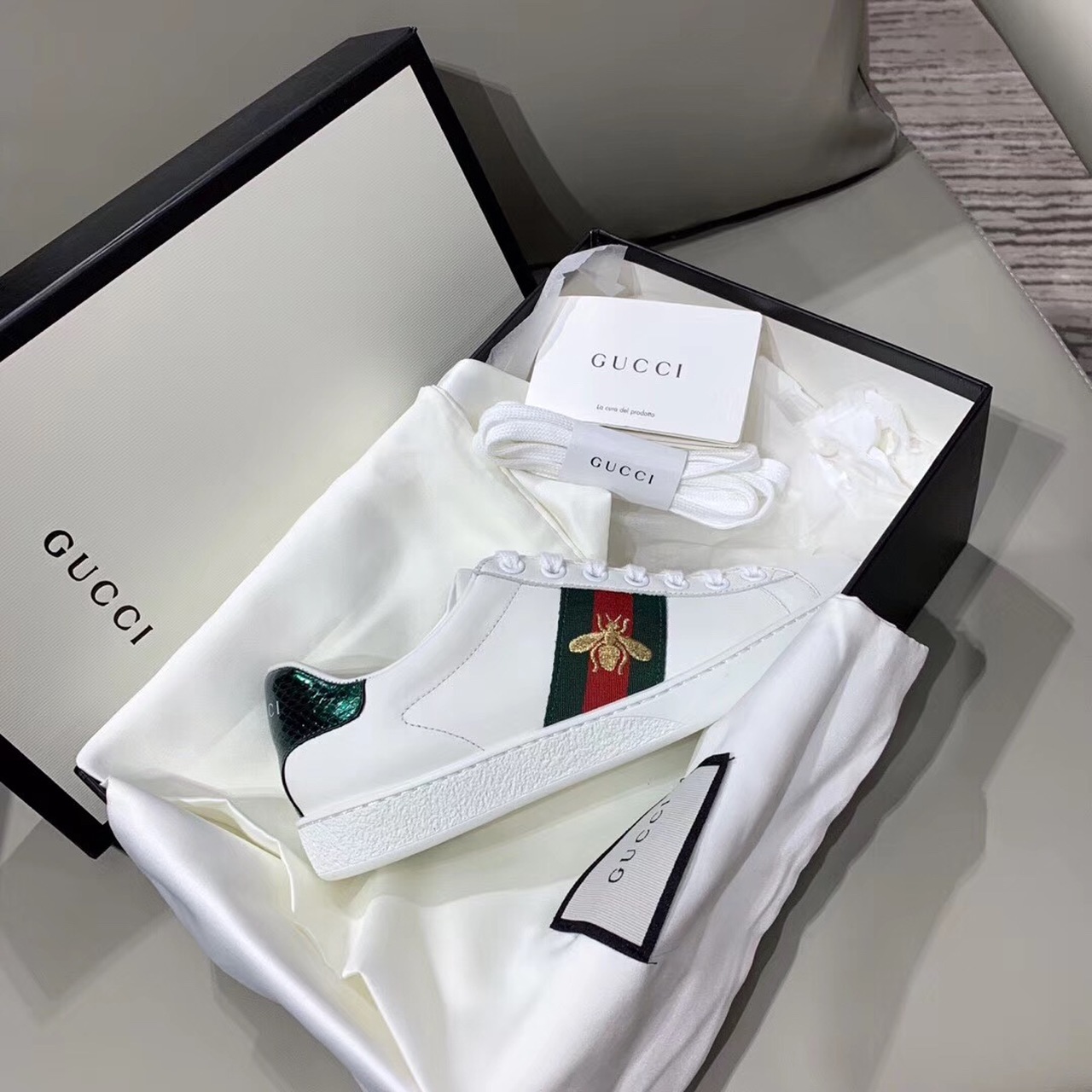 The House's classic low-top sneaker is embellished with the gold embroidered bee against the green and red Web. The bee is an archival code first introduced in Gucci ready-to-wear in the 1970s.