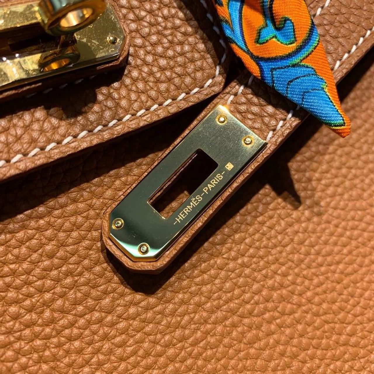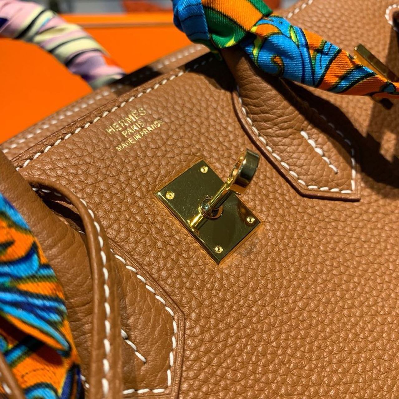Hermès bags are considered the ultimate luxury item the world over. Hand stitched by skilled craftsmen, wait lists of a year or more are common. This Birkin has tonal stitching, a front toggle closure, a clochette with lock and two keys, and double rolled handles. This bag is also known to hold the shape of the bag well over time.