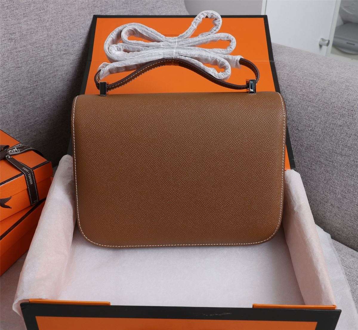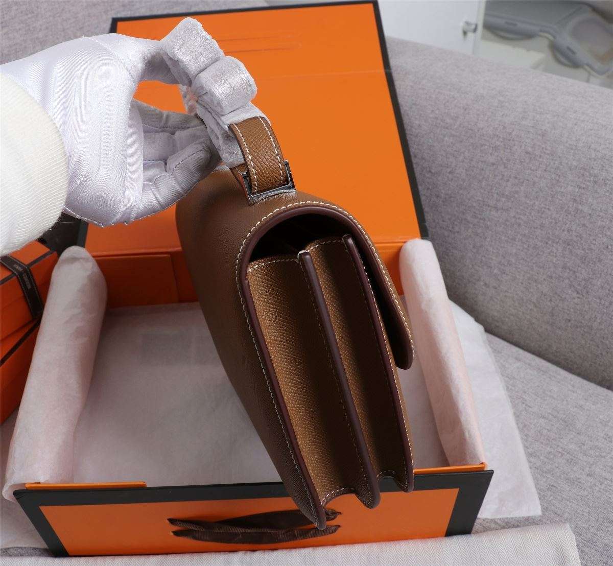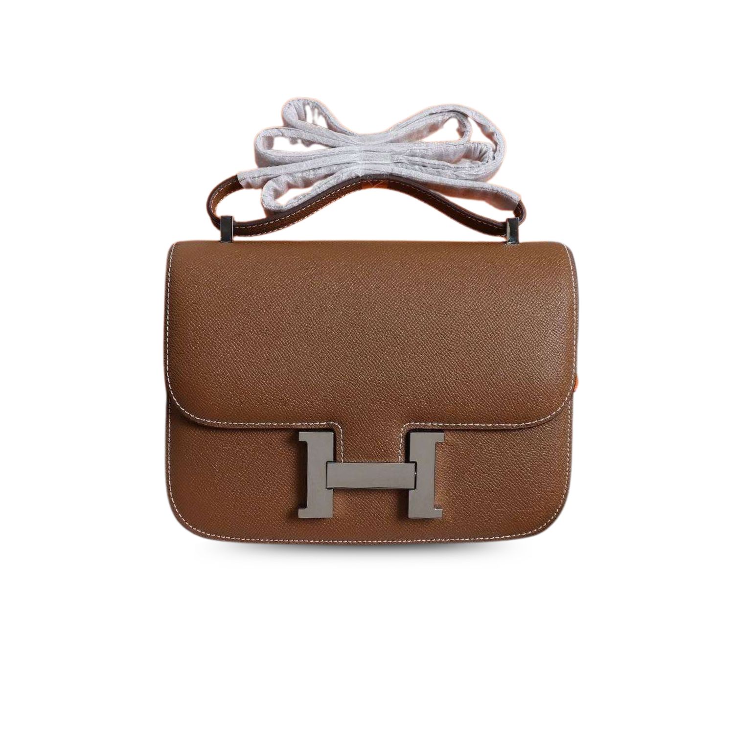 Efficiency meets style in every Hermes bag, when sophistication is a must have, timeless attribute, as seen in this Constance shoulder bag. Featuring a smooth surface with a matte finish, Silver-tone hardware, a foldover top with push-lock closure, interior compartments divided by a partition, an internal zipped pocket and a front centre logo stamp.