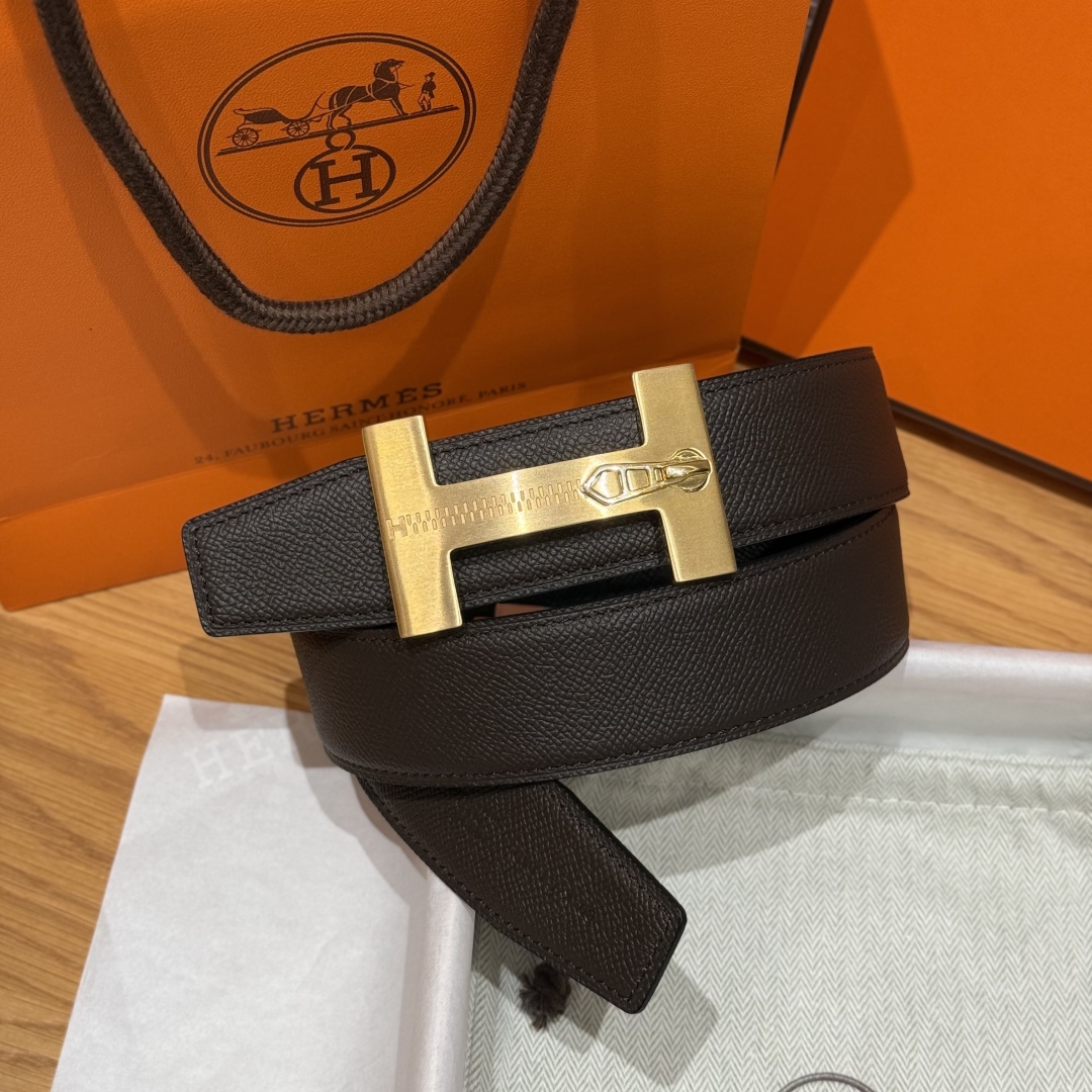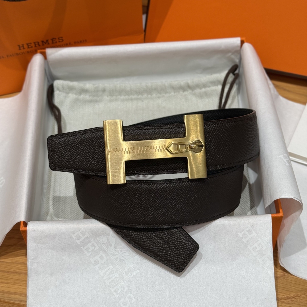 Hermès “H-Zip” 38mm Reversible Belt Dark Brown & Black