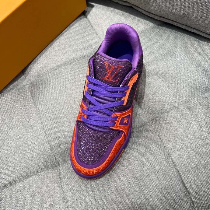 This exceptional edition of the LV Trainer sneaker is covered in sparkling rhinestones. This cult model, which was designed by Virgil Abloh, nods to vintage basketball sneakers. It is signed with the LV Initials on the tongue and side. This exceptional edition of the LV Trainer sneaker is covered in sparkling rhinestones. Nods to vintage basketball sneakers. It is signed with the LV Initials on the tongue and side.