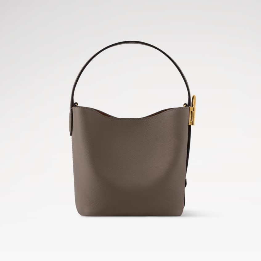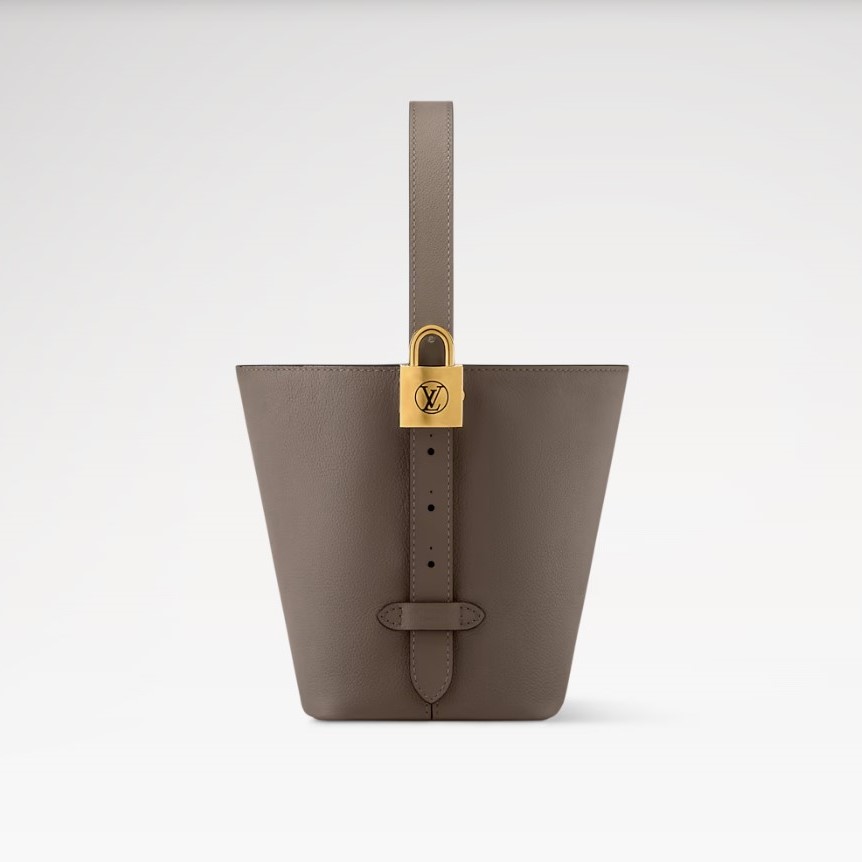 The Low Key collection introduces an iconic style to its lineup with this bucket-shaped All In BB. It is crafted with a signature gold-toned padlock, as well as a decorative name tag and removable Monogram pouch that slots neatly inside. Designed to be worn casually as an open bucket bag, the versatile model can also be folded flat to create a pyramidal profile.