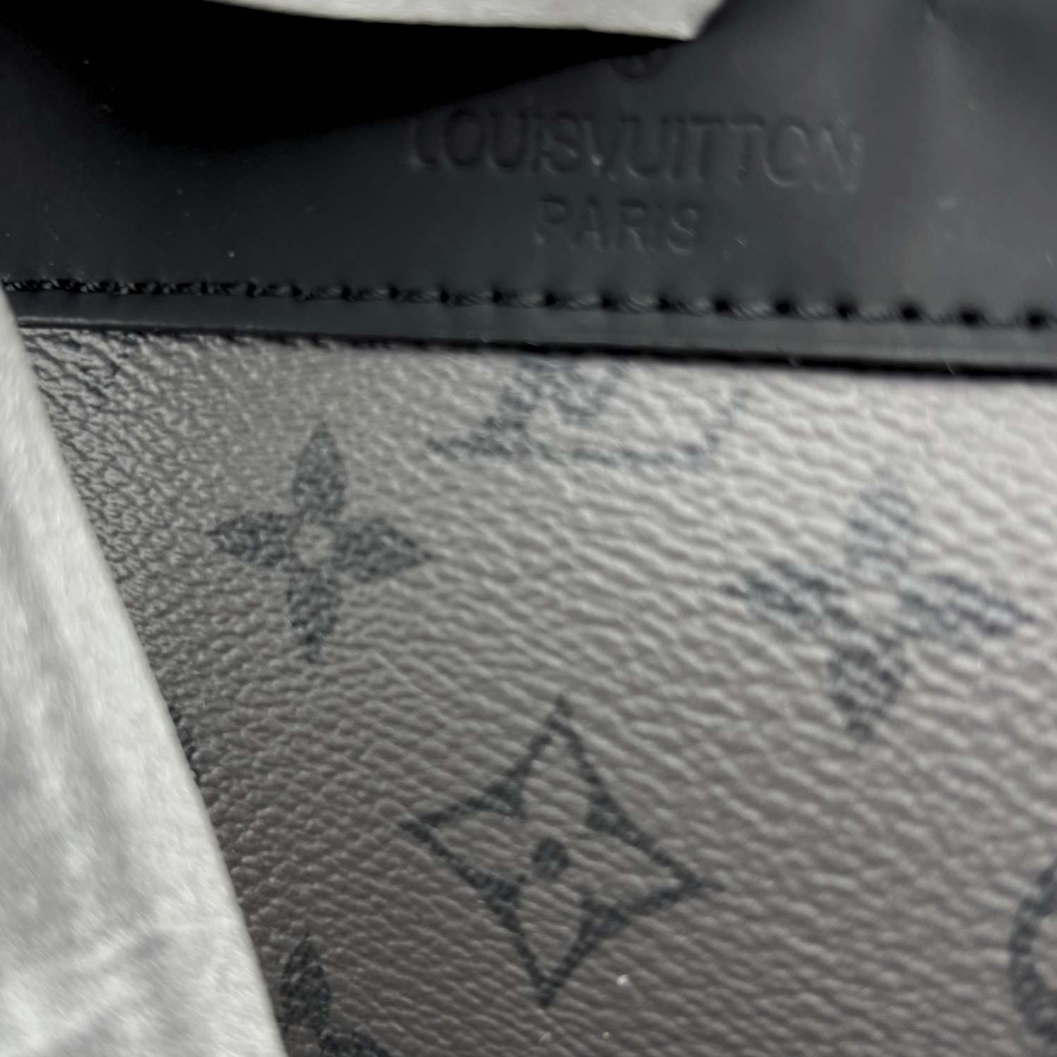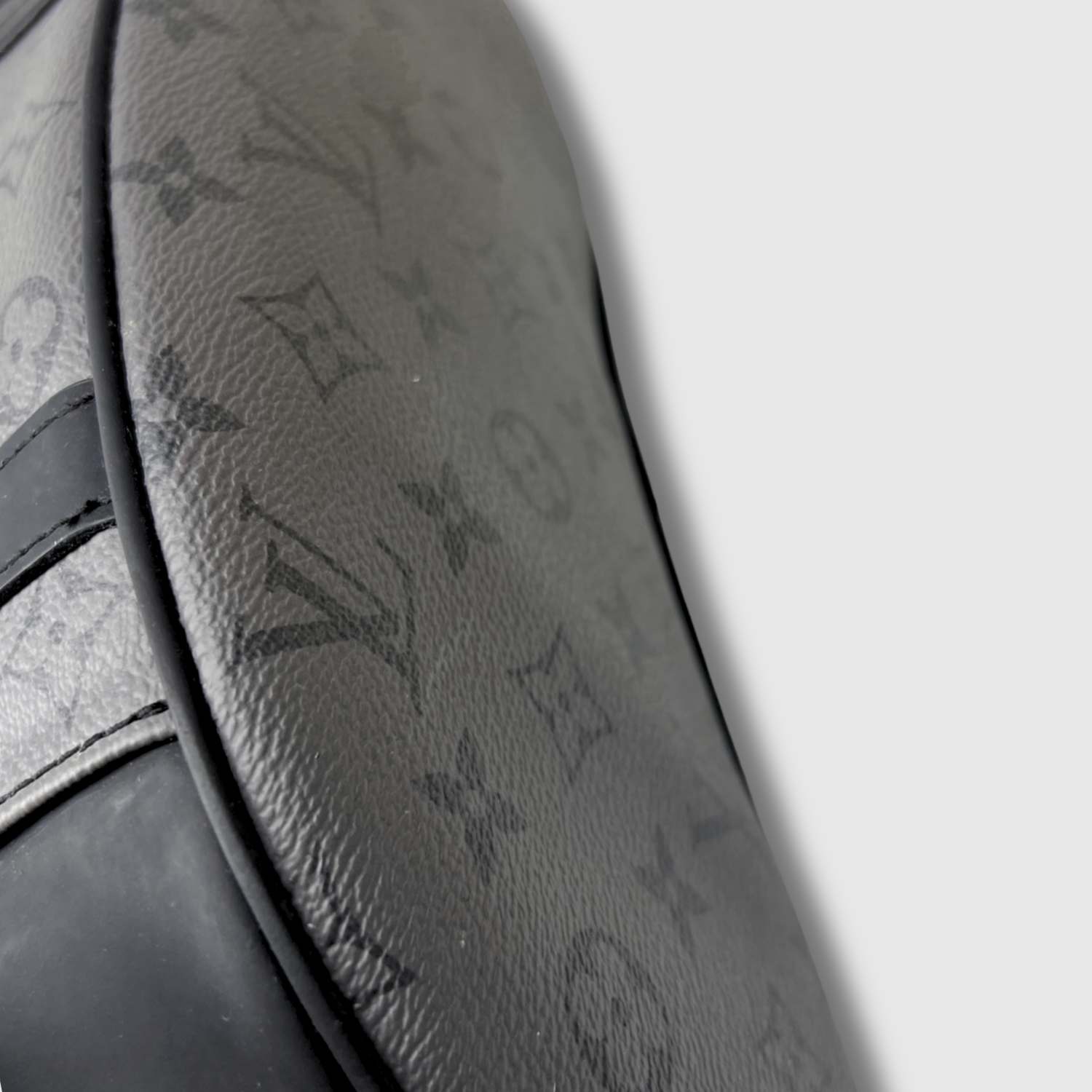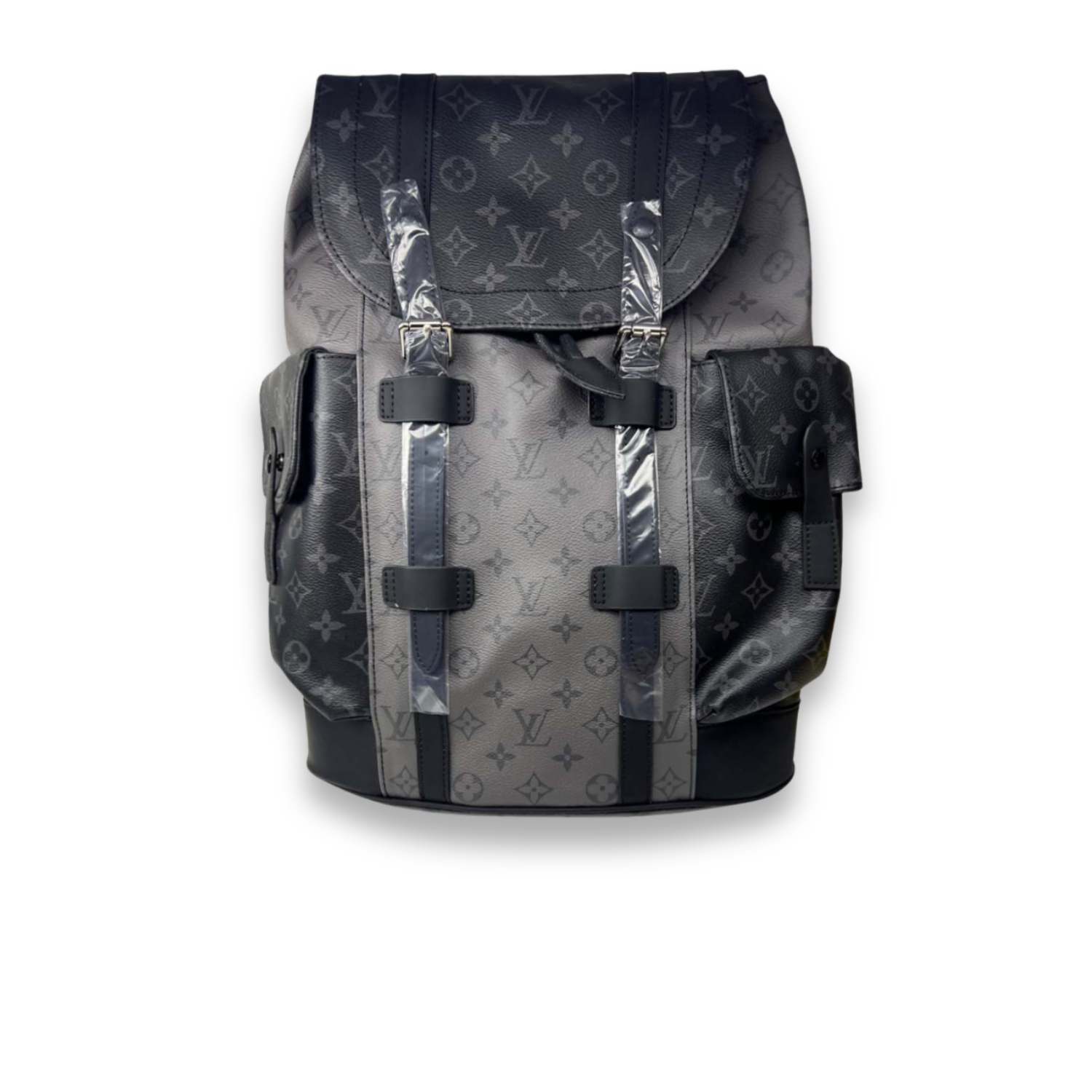 The Christopher MM backpack reinvents the rugged spirit of a hiking pack in masculine Monogram Eclipse canvas and Monogram Eclipse Reverse canvas. The grays and blacks are complemented by the silver highlights of the buckles and zips. Multiple pockets and a flap with a press-stud keep belongings safe.