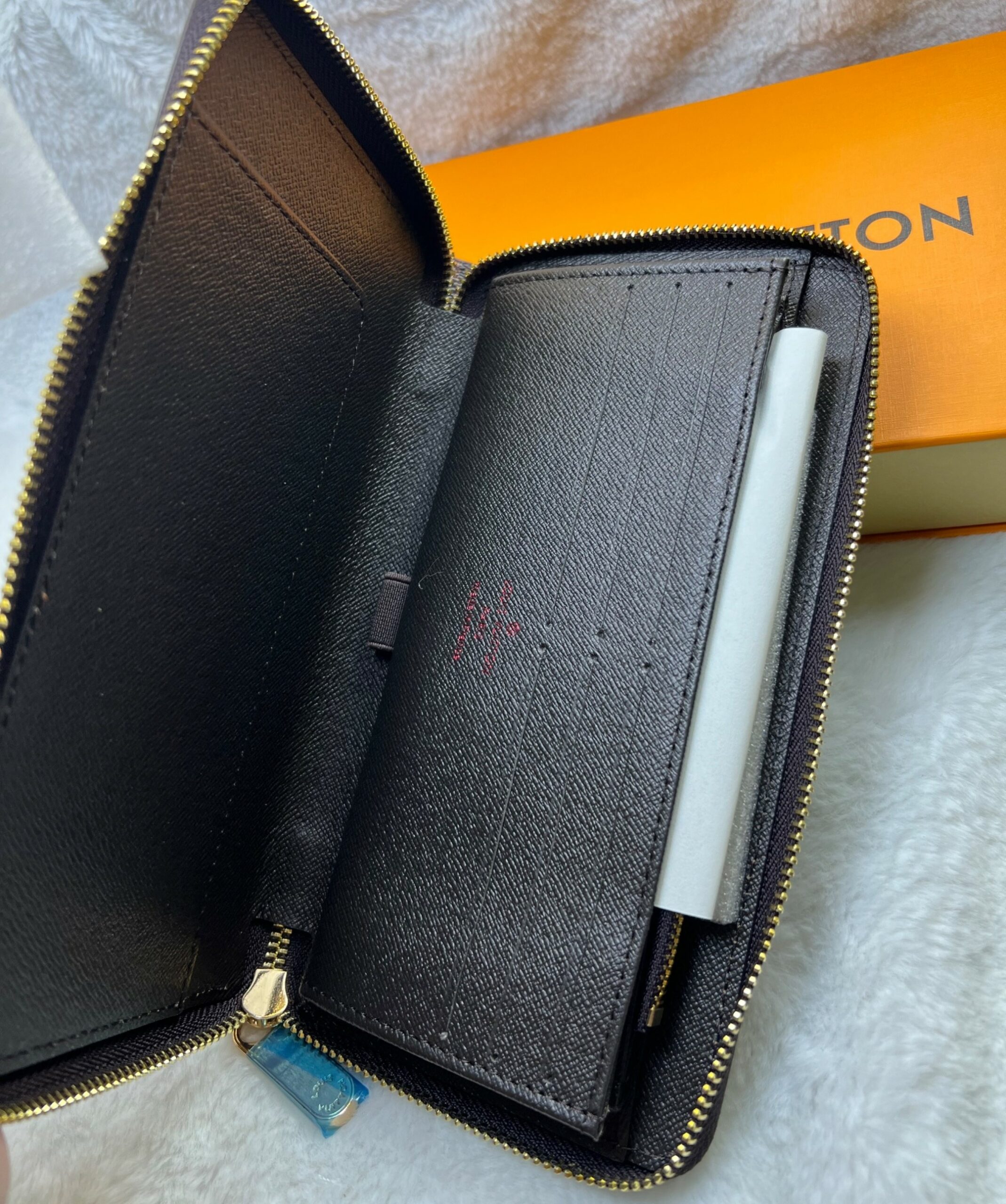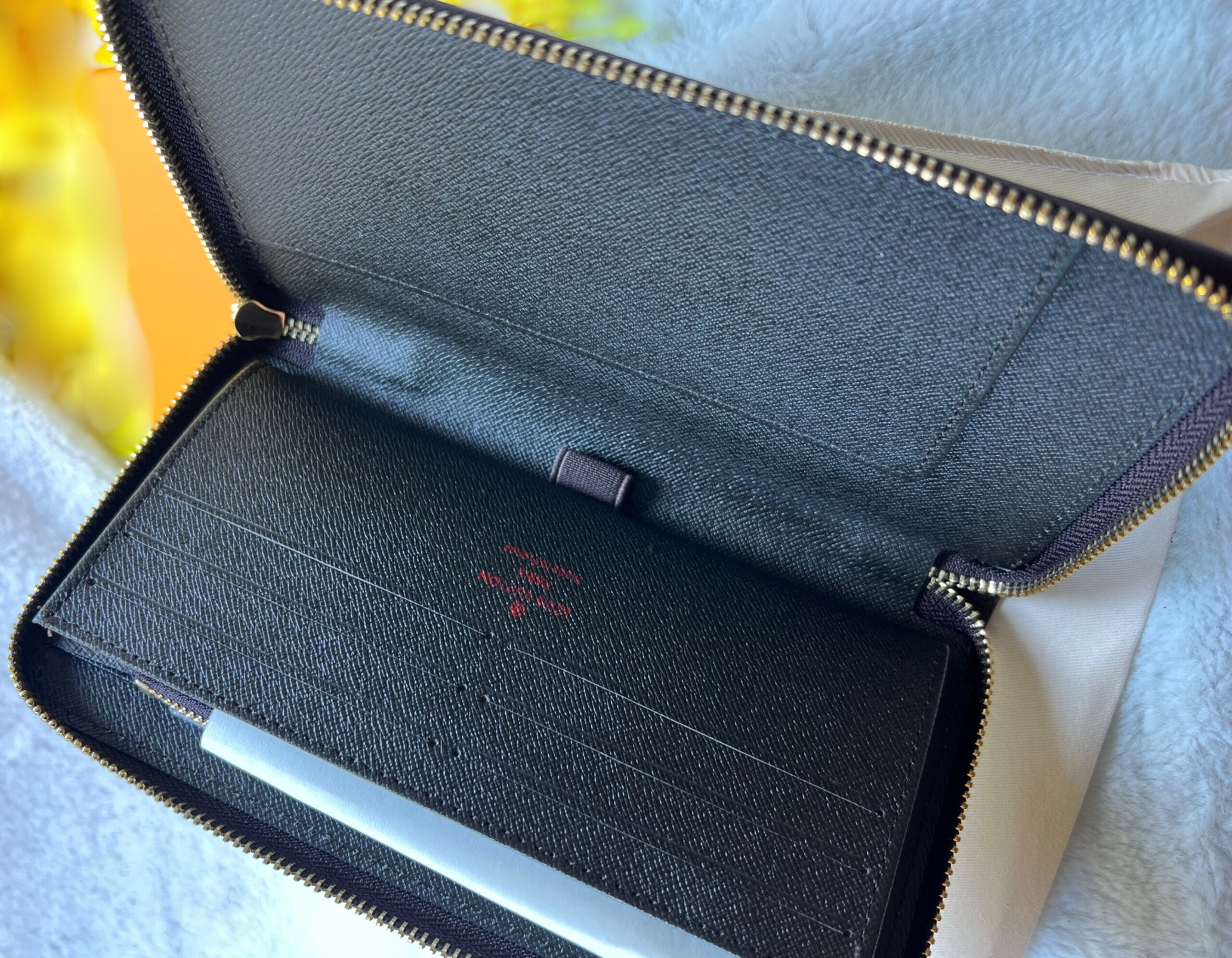 This iconic wallet just got an upgrade! Now with four additional credit card slots and a playful new colored lining, the Zippy Wallet in Damier Ebene canvas is more versatile than ever
