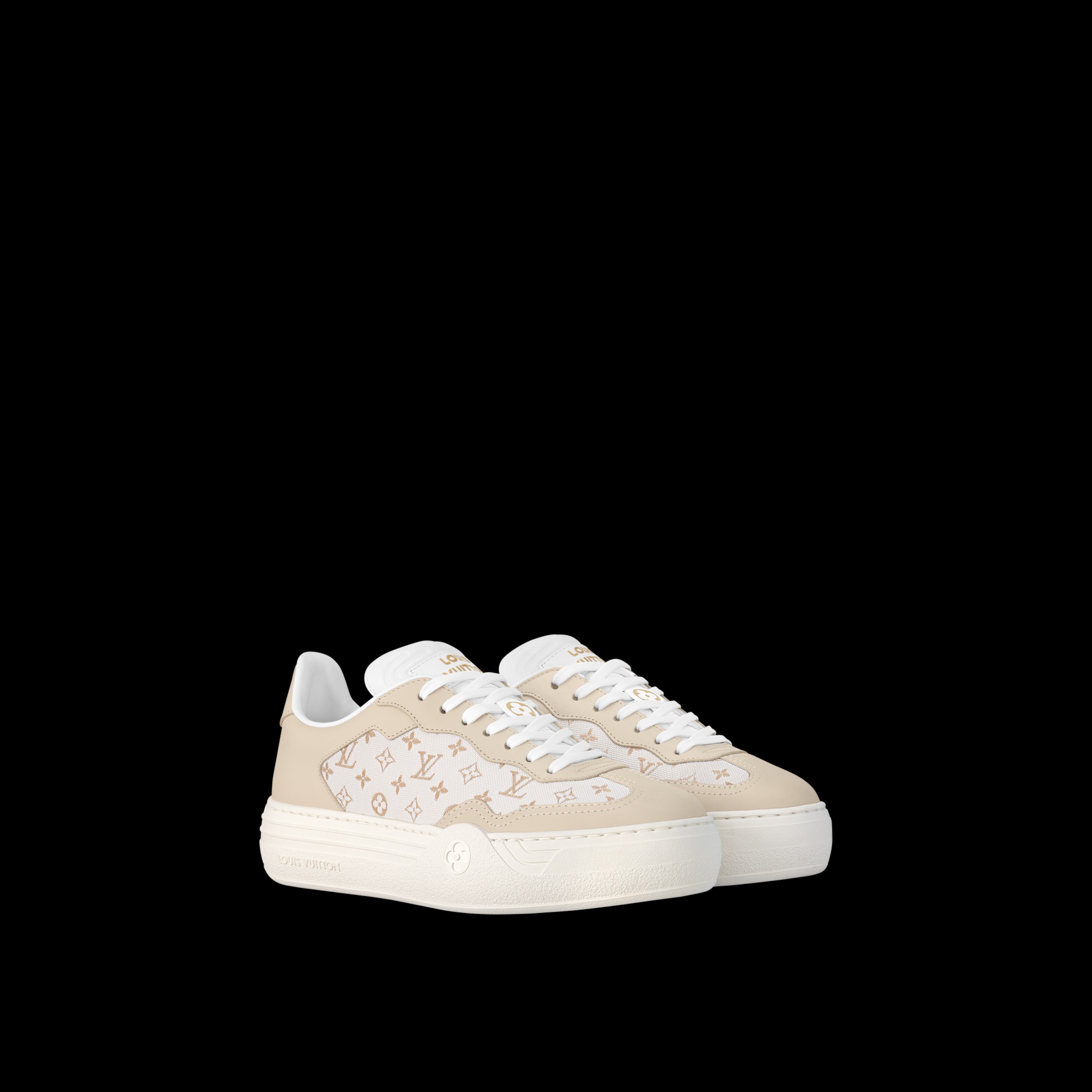 Rep: 1:1 The LV Groovy sneaker comes in a refined combination of Mini Monogram textile and soft calf leather. This model is notable for its Seventies-inspired upper and on-trend platform outsole, which is decorated with a Monogram Flower.