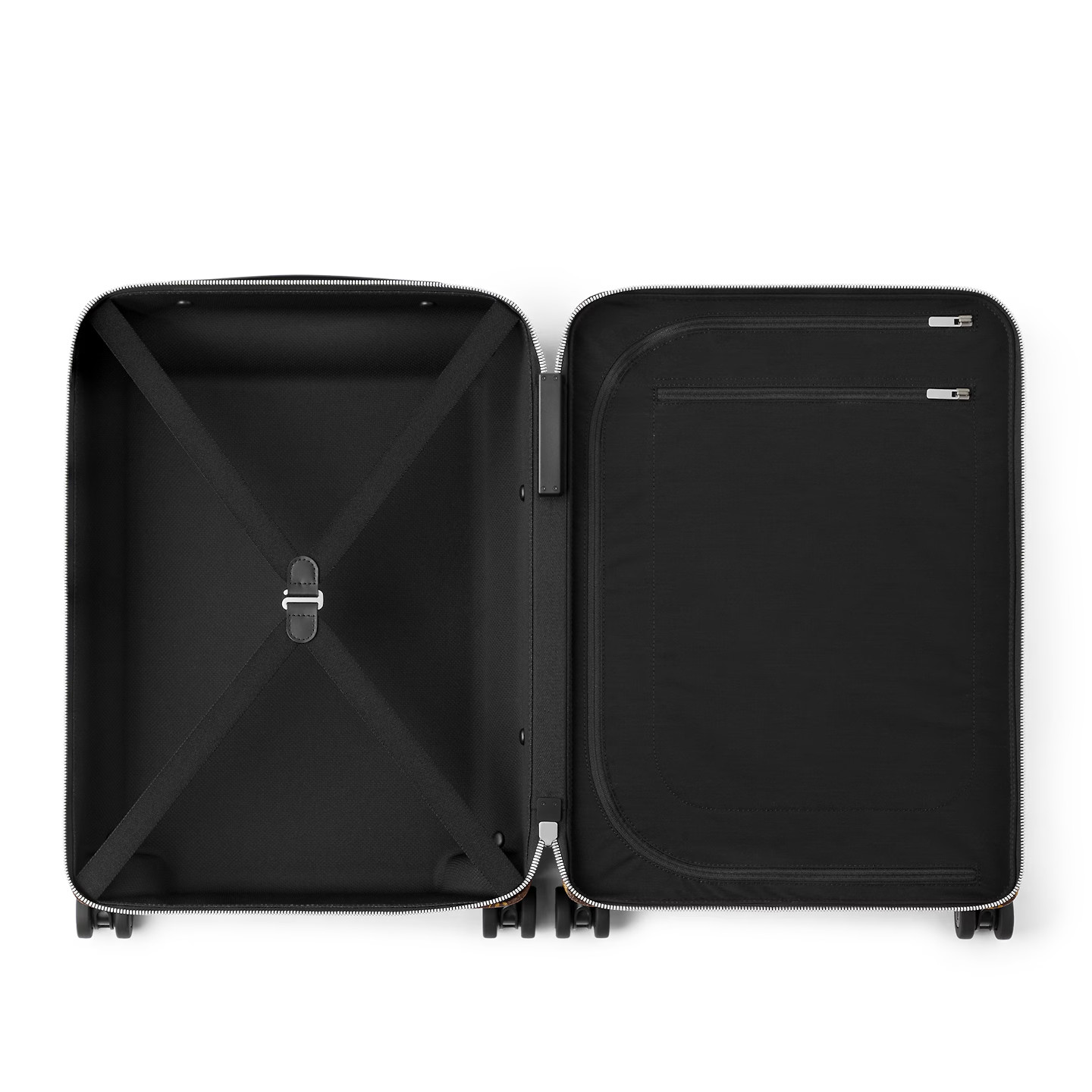 Inspired by the hazel-brown and black striped Macassar ebony wood, Nicolas Ghesquière has used Monogram canvas and shiny aluminum hardware to create this Horizon 55 hard-sided bag. Small enough to use as carry-on luggage, this lightweight 4-wheeled bag boasts a surprisingly large interior thanks to its external handle frame.
