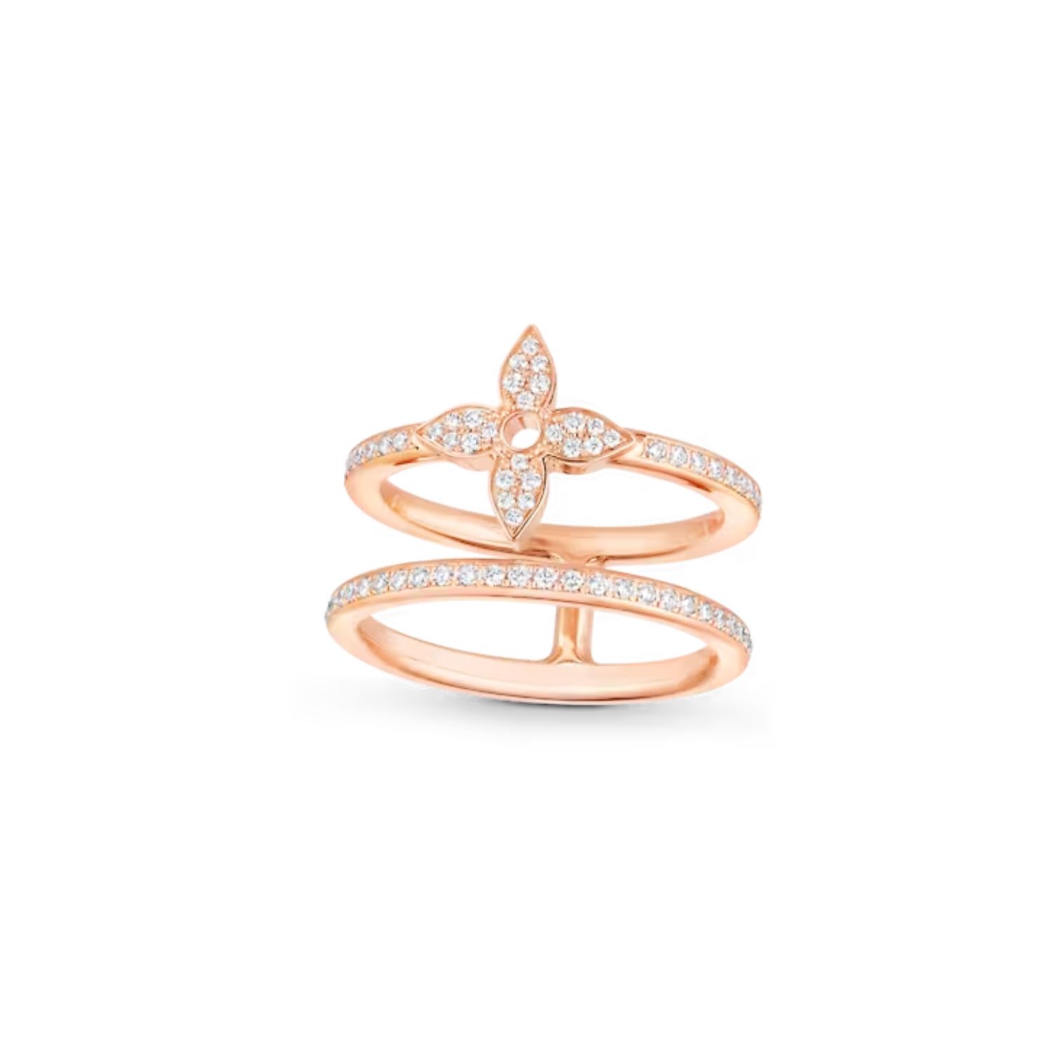 Louis Vuitton Idylle Blossom Two-Row Ring, Pink Gold And Diamonds For Women- Q9N42I