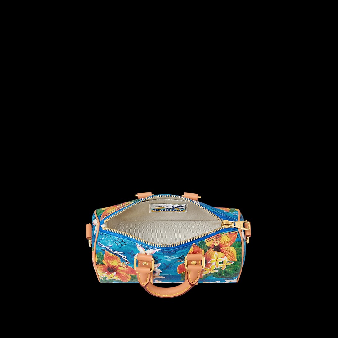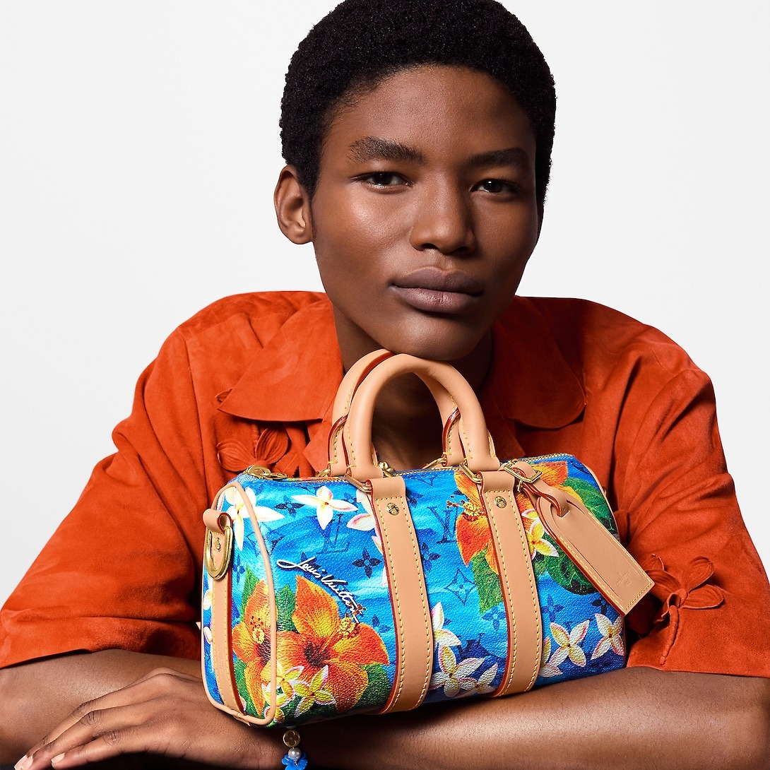 Showcasing the House’s superior craftsmanship, this Keepall Bandoulière 25 is hand-made; the shell of the bag taking about 40 hours to create. The woven Damier pattern is paired with natural leather trim, evoking the House's heritage design codes.