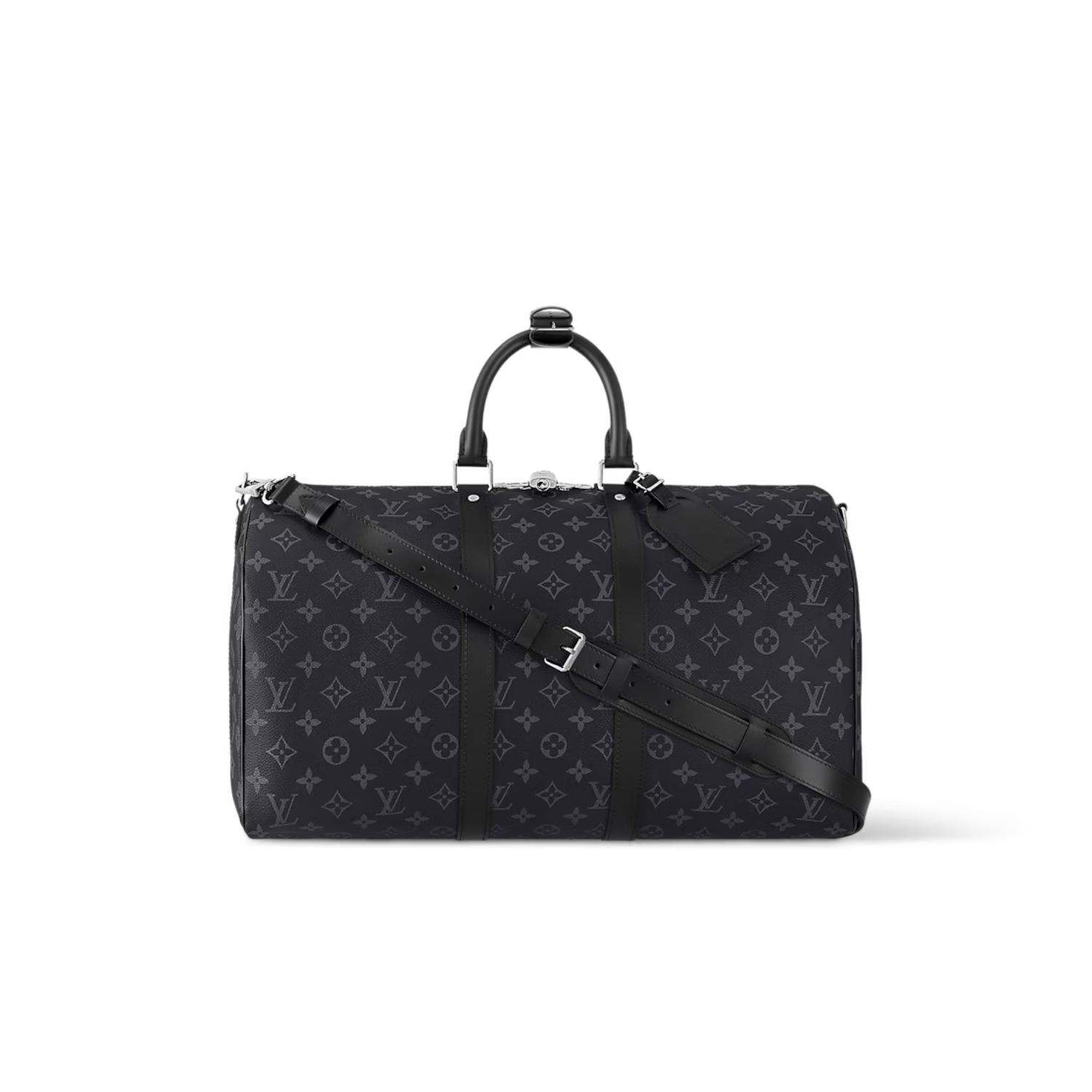 This iconic Keepall 45 Bandoulière is fashioned in our new iconic black and grey Monogram Eclipse canvas. Since 1930, the Keepall duffle has journeyed alongside generations of elegant globetrotters. This version – with comfortable-to-hold handles, a strap for casual cross-body wear and a gleaming padlock – holds all the essentials for an overnight jaunt.