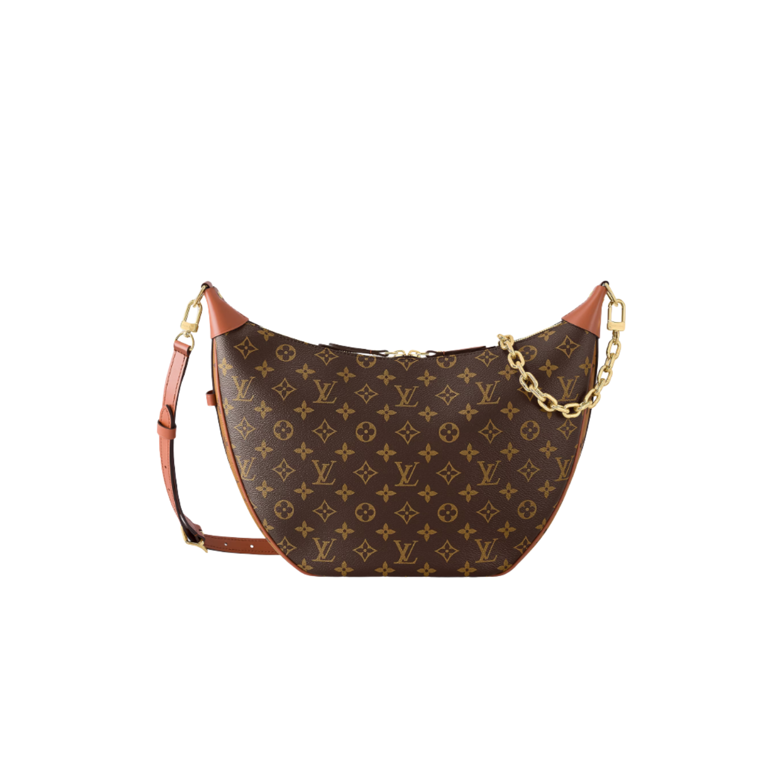 Created by Nicolas Ghesquière for the Cruise 2022 Collection, the Loop handbag is a half-moon baguette, inspired by the Croissant bag from the House archives. It has a body-friendly, compact shape and a chain for shoulder carry, as well as a cross-body strap. The front zip pocket closes with a LV Circle zip pull.
