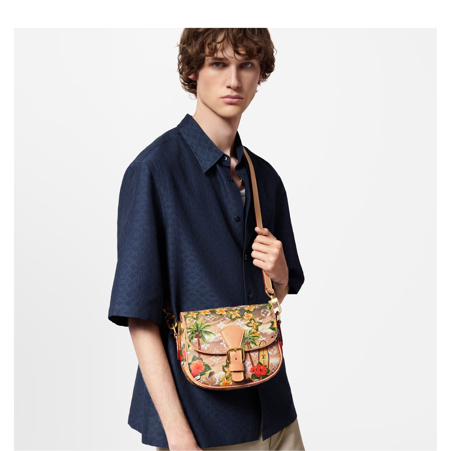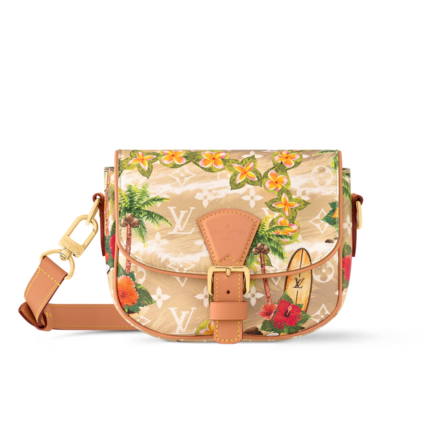 The Montsouris Messenger PM bag, crafted from Pharrell Williams’ Monogram Surfin’ canvas, boasts a vibrant summery print and signature buckle. Perfect for everyday essentials in a compact cross-body design.