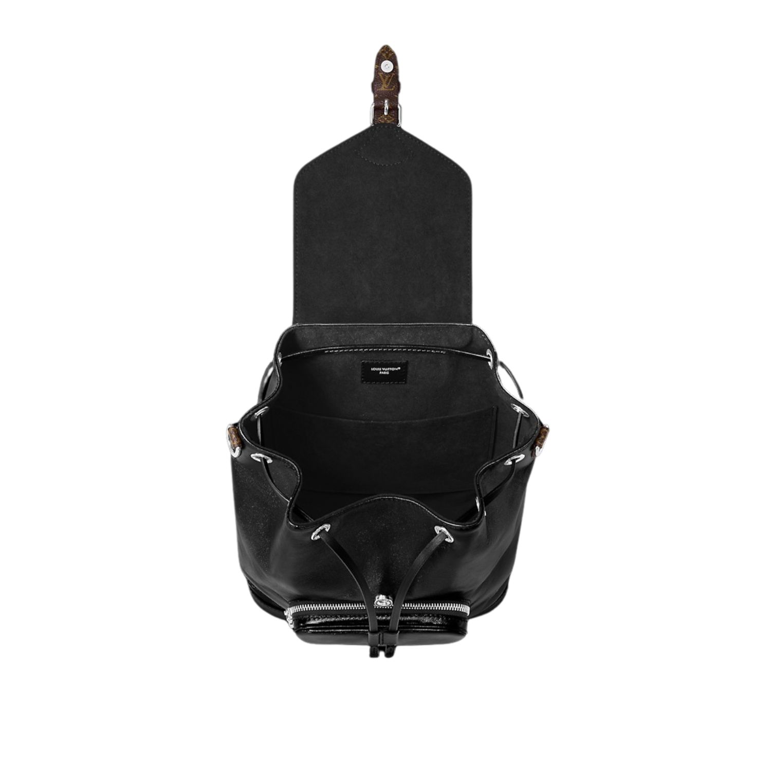 Part of the LV Vibe Family, the Montsouris PM is the ultimate elegant backpack : crafted from the LV Vibe signature lambskin glossy leather, and detailed with a touch of Monogram. Finished with sleek silver-toned hardware, this functional design closes with an archive Louis Vuitton buckle and leather drawstrings.
