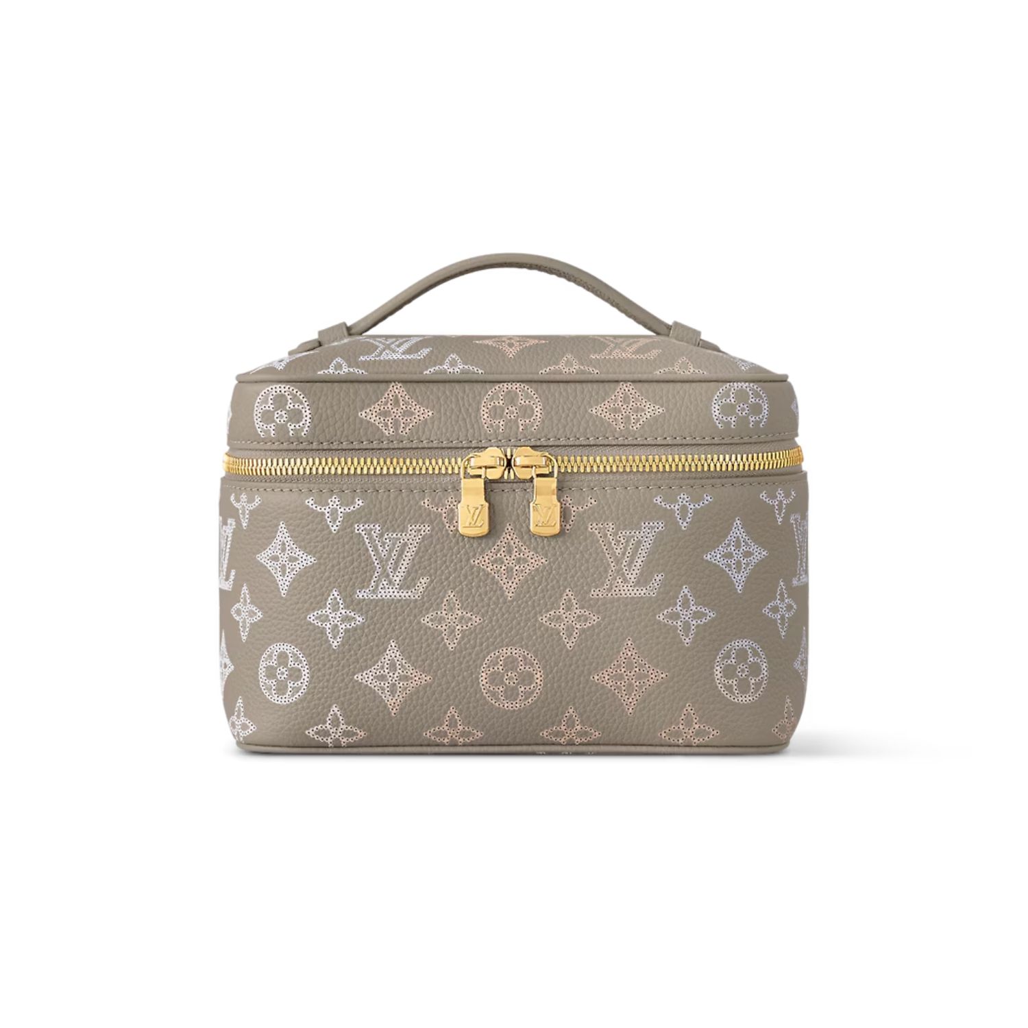 Compact and supple, the Nice Mini vanity case in Mahina perforated slips comfortably into most travel bags. Designed to hold toiletries and grooming essentials, the bag features a washable lining. The double-zip closure, actioned with LV-engraved metal pulls, keeps items secure.
