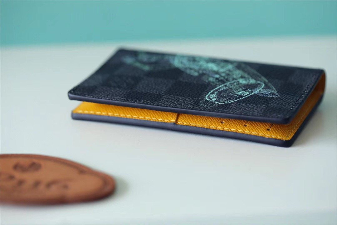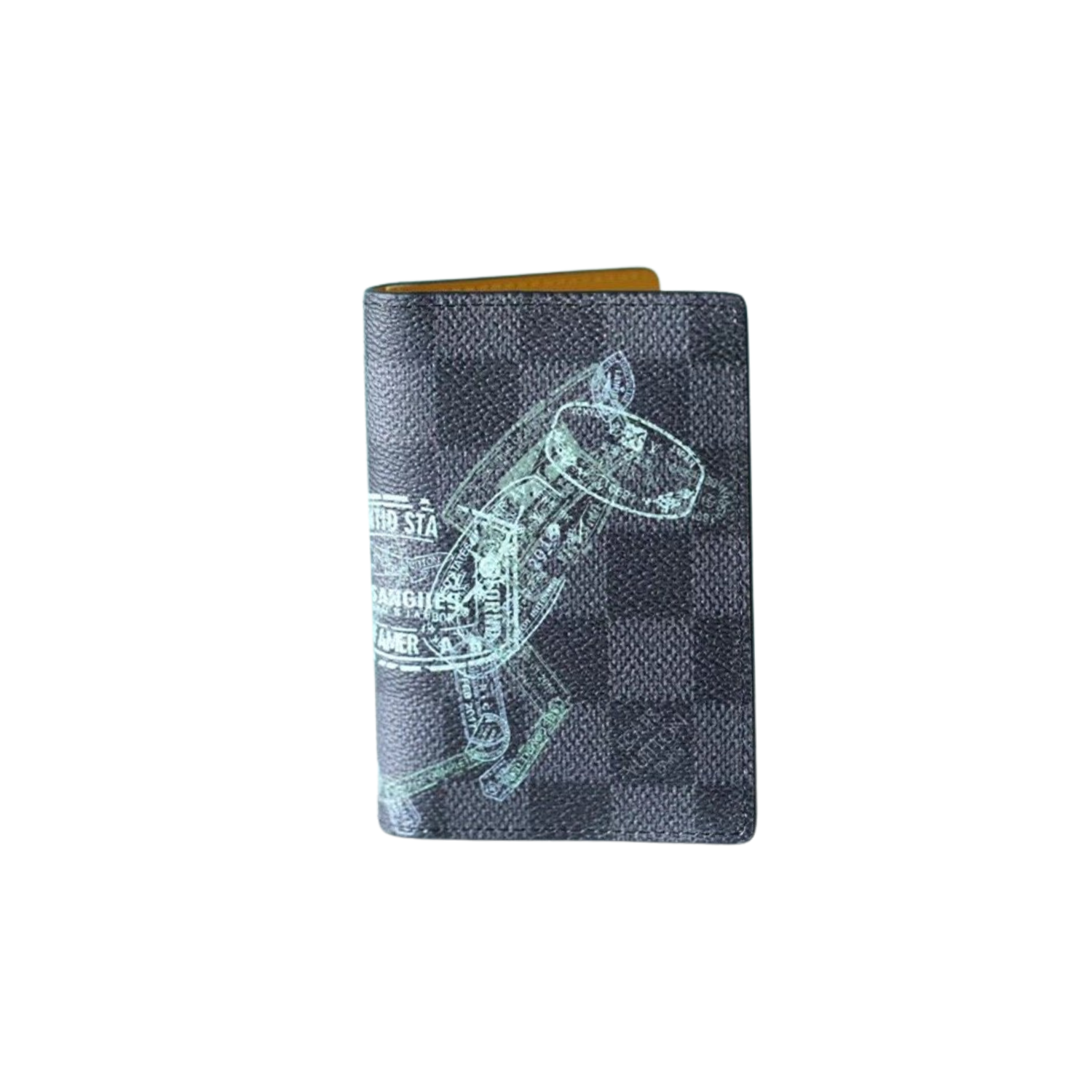 This new version of the Pocket Organiser expresses the freedom of travel with the 'Stamps' decoration on Louis Vuitton’s classic Damier Graphite canvas. Pastel-coloured passport stamps form the image of a charging rhinoceros for a creative exotic touch. Inside, its ingenious design features multiple pockets and card slots to keep everything neatly in place.