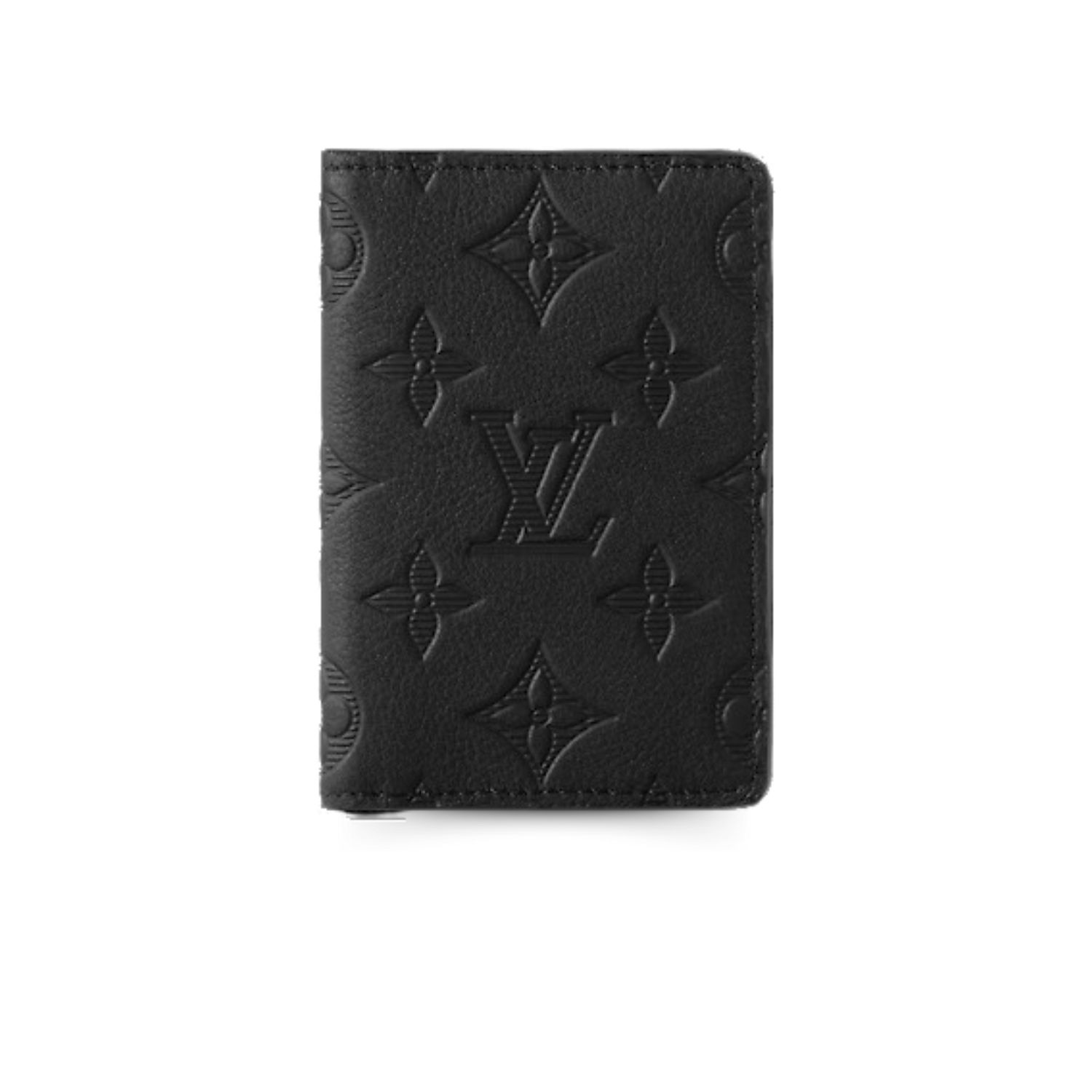 Louis Vuitton's Pocket Organizer in black Monogram Shadow calf leather is an elegant way to carry everyday essentials. Discreetly embossed with the iconic Monogram pattern, Monogram Shadow is an exceptionally supple leather which complements the sleek design of this ultra-compact wallet containing several pockets and credit card slots.