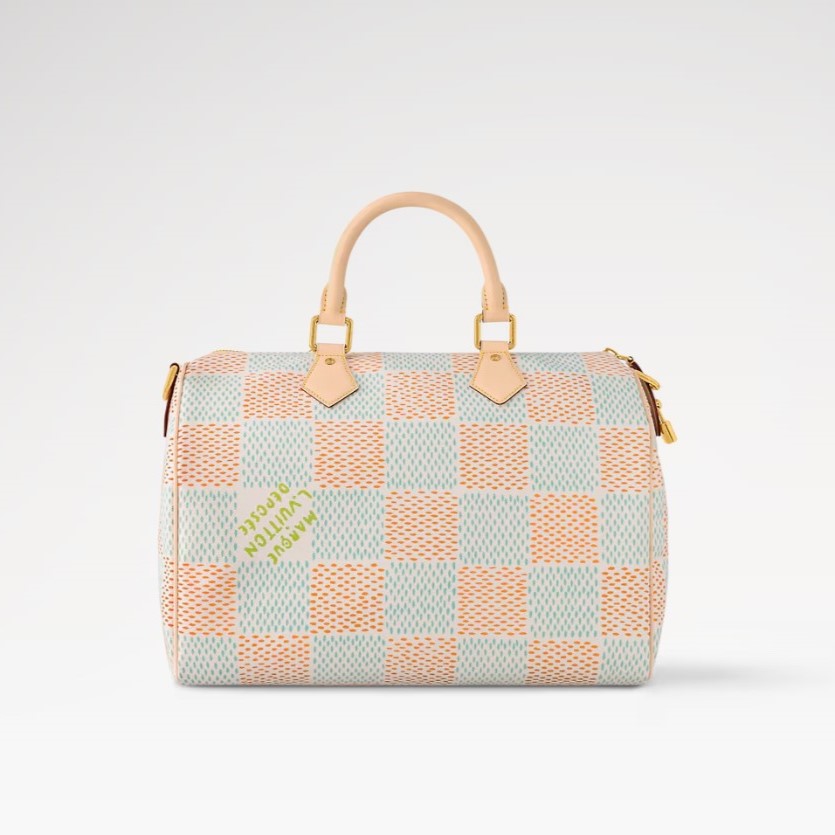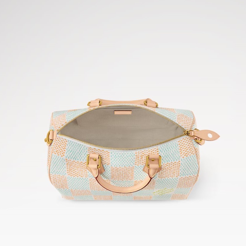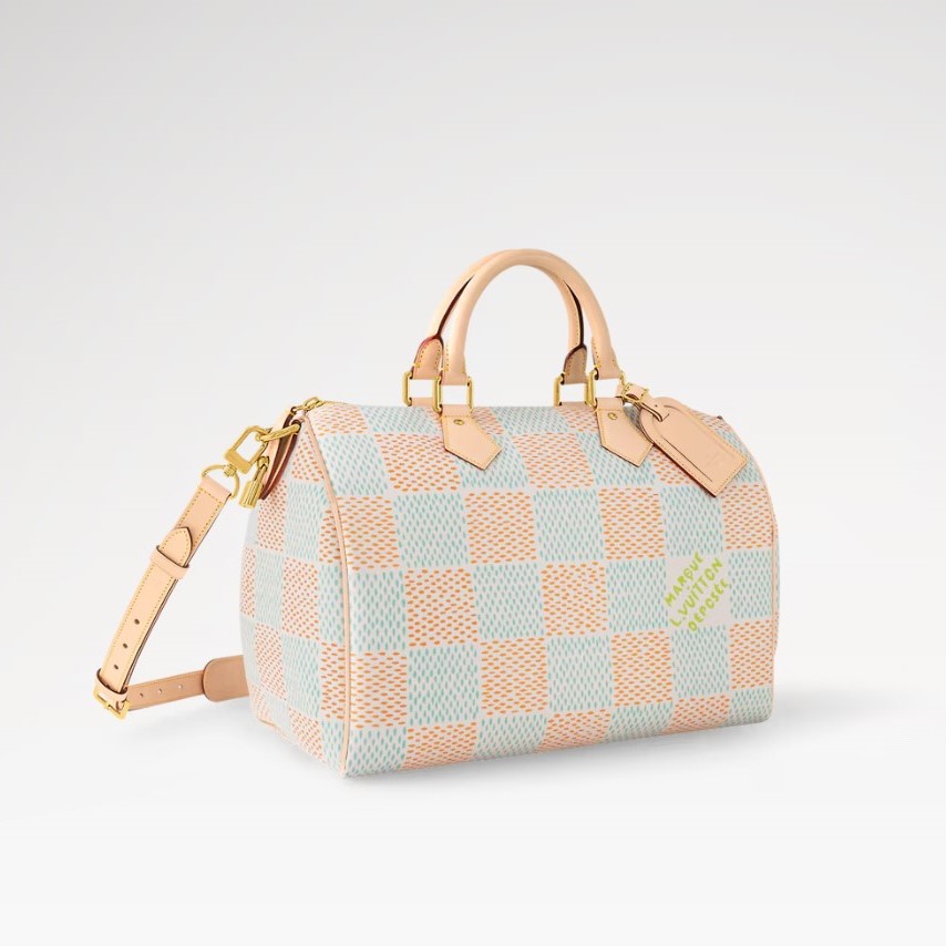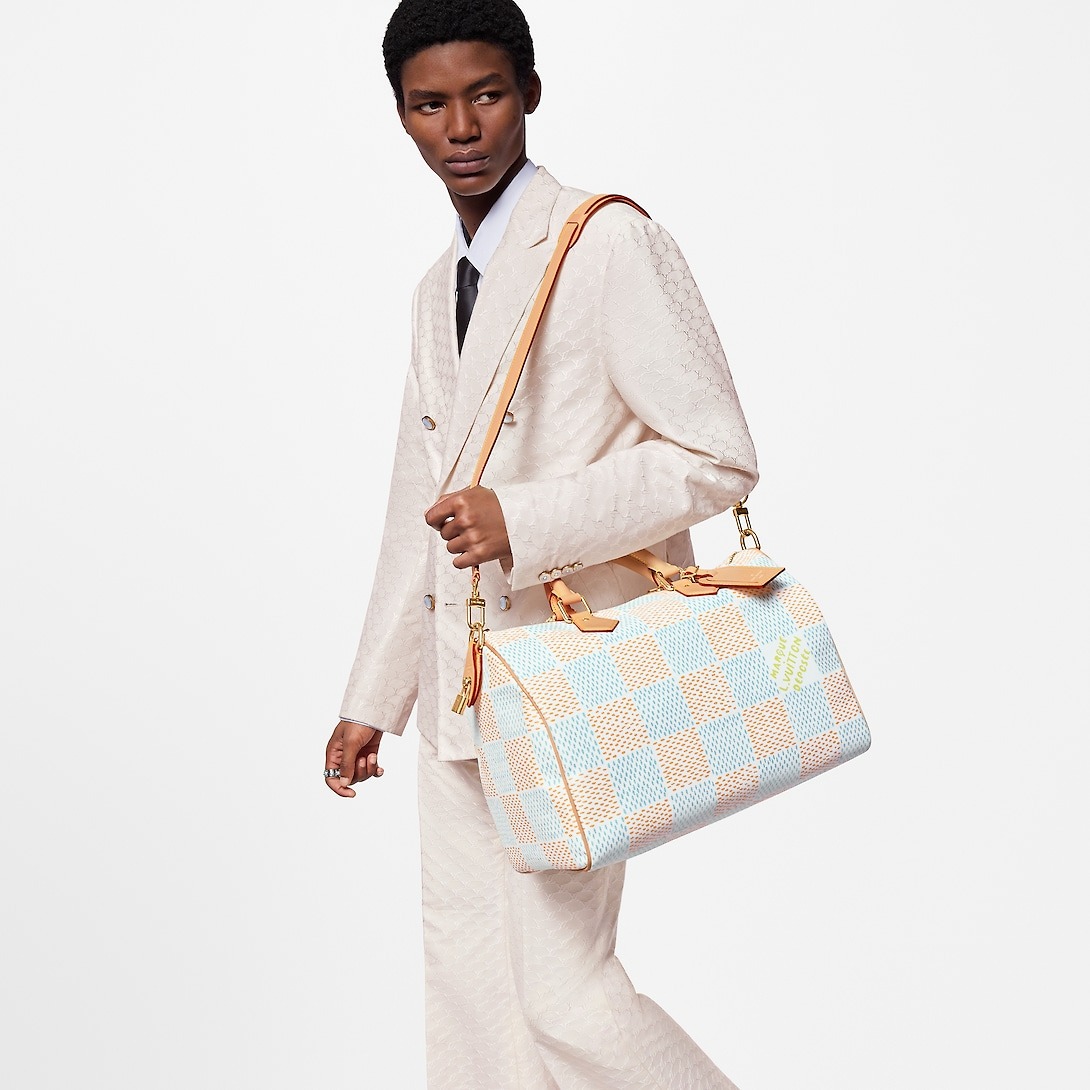 The Speedy 40 Bandoulière is made from Damier Heritage canvas, Pharrell Williams’ reimagining of the emblematic pattern. The cowhide leather trim, including the top handles, handle mounts, and name tag, anchor the bag in Louis Vuitton’s classic design codes. A removable and adjustable shoulder strap, in addition to the top handles, gives carry options.