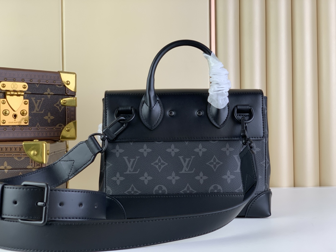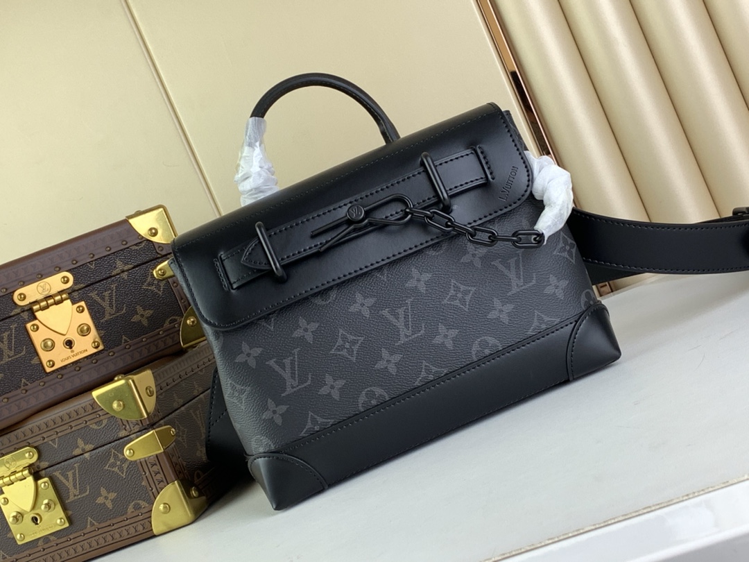 The new Steamer NM offers a distinctive combination of contemporary styling and heritage touches. Crafted in the House’s iconic Monogram Eclipse canvas, it features a host of details inspired by Louis Vuitton’s historic Steamer luggage, from the trunk-style corners to the signature chain and pin buckle. This practical, body-friendly bag makes an ideal addition to an on-trend look