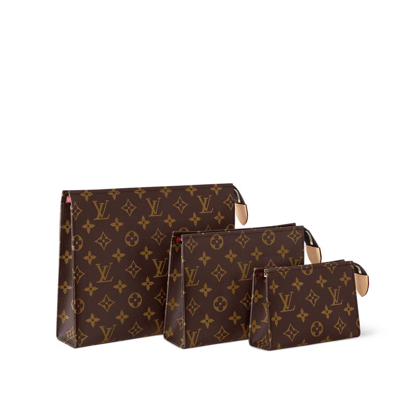 The Trio Toiletry Pouch is a set of three different-sized, classic Louis Vuitton pouches. All made from Monogram canvas, each pouch has a different vibrant-coloured lining, which is washable, making them as elegant as they are practical. These finely crafted pieces are finished with ruthenium tone hardware.