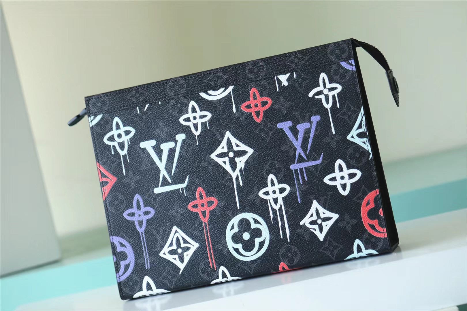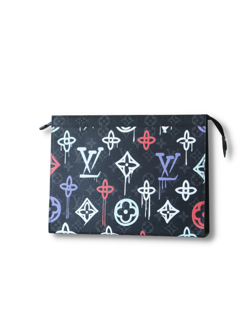 The Pochette Voyage takes on a streetwear feel in Monogram Eclipse canvas with a graffiti treatment of the Monogram pattern. An unexpected take on a useful accessory, this pouch is ideal for carrying small personal items. The Pochette Voyage slips easily into a larger bag.