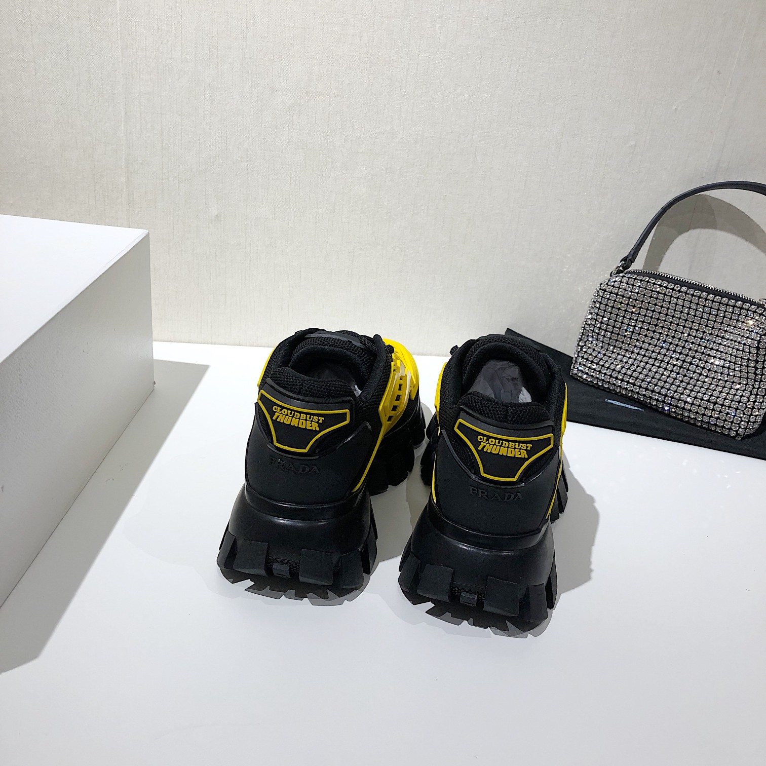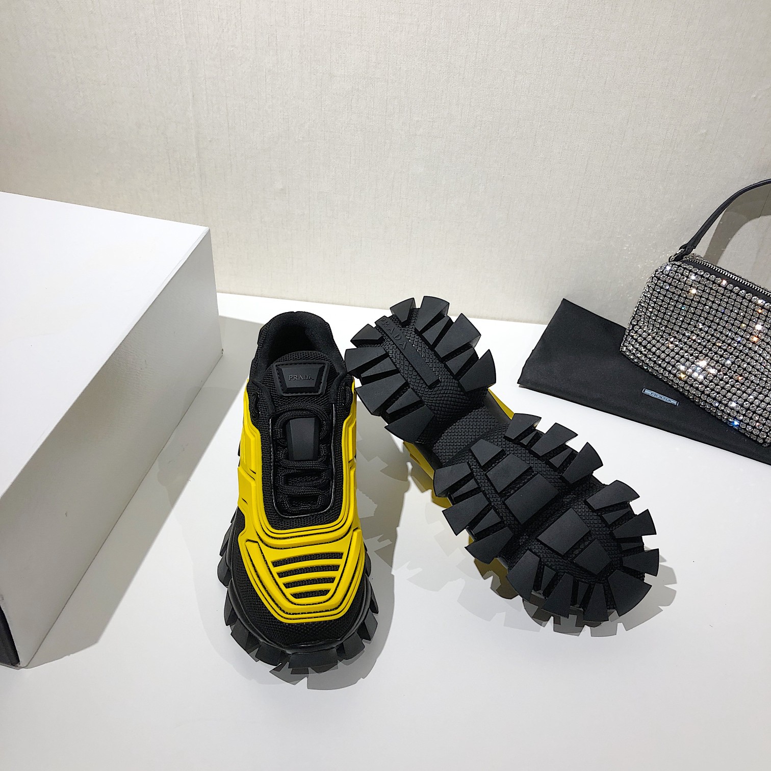 Retro-inspired color contrasts are combined with three-dimensional injected rubber textures, giving Prada Cloudbust Thunder sneakers a strong, bold character. Made of Re-Nylon Gabardine, an innovative, sustainable fabric produced from recycled plastic collected in the ocean, this shoe is enhanced by the iconic lug sole that gives it an emblematic accent.