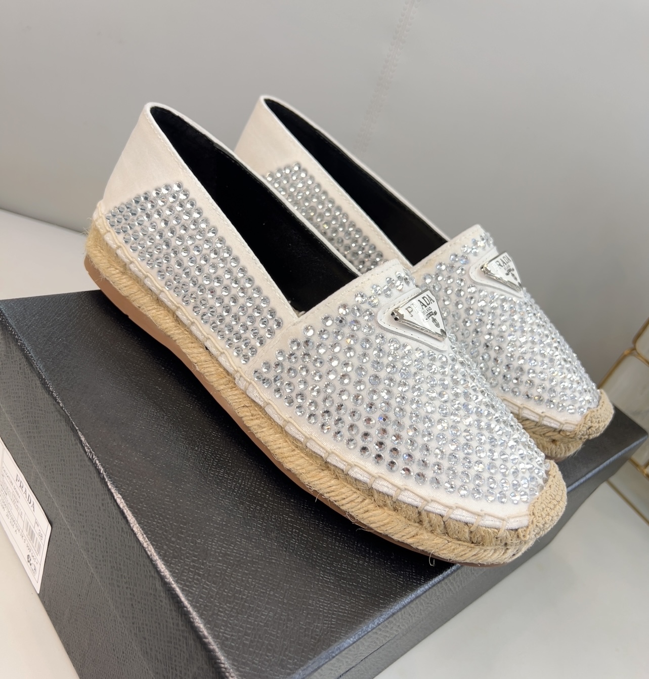 All-over synthetic crystals Metal lettering logo 20mm rubber and rope sole