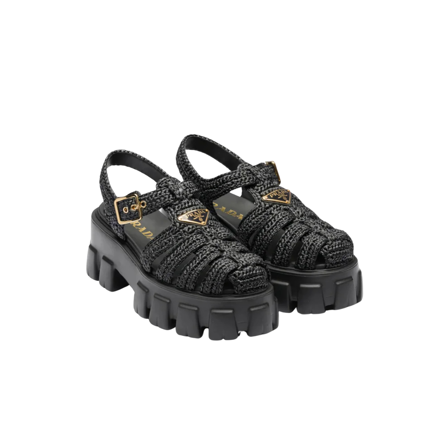 The iconic Monolith style is reimagined for the summer season. Sophisticated crochet and fine artisan workmanship meet in this sporty design with oversized volumes. New experimentation and tradition are embodied by the distinctive details of the shoe like the metal triangle logo.