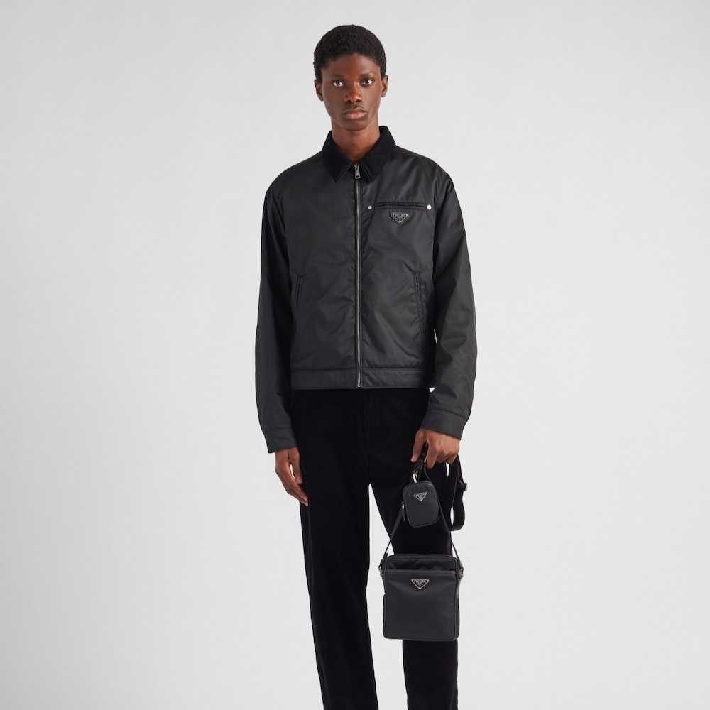 This Re-Nylon shoulder bag is defined by a modern, functional design, removable pouch and spacious inside compartments. The accessory is finished with leather details and an iconic, enameled-metal triangle logo. Size: 7.9 x 6.7 x 2 inches / 20 x 17 x 5 cm (Height x Width x Length)