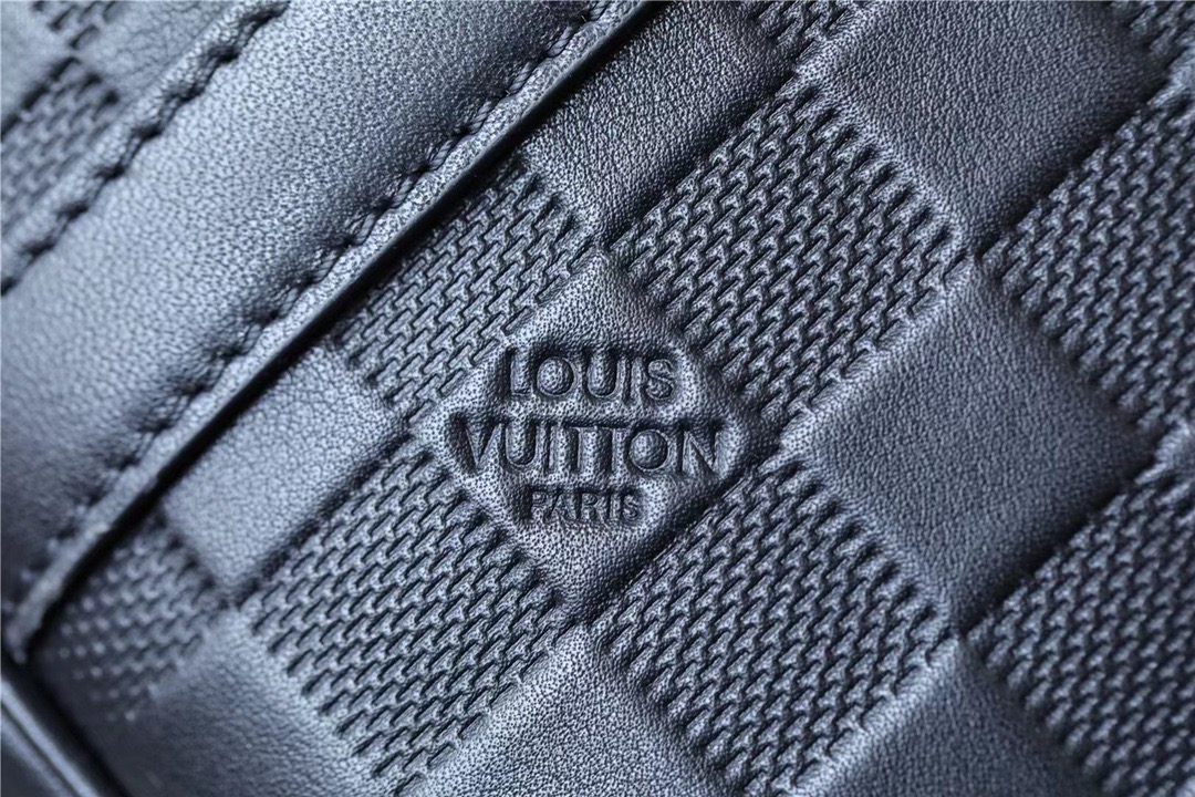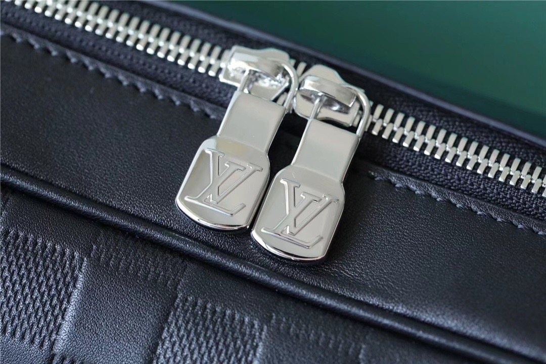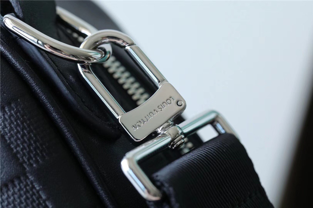 Although slim, the Sirius Briefcase Damier Infini Onyx has a wide opening for easy access to belongings inside. A removable and adjustable shoulder strap enables the bag to be worn on the shoulder or across the body. The D-ring to which the name tag is attached adds an unexpected twist.