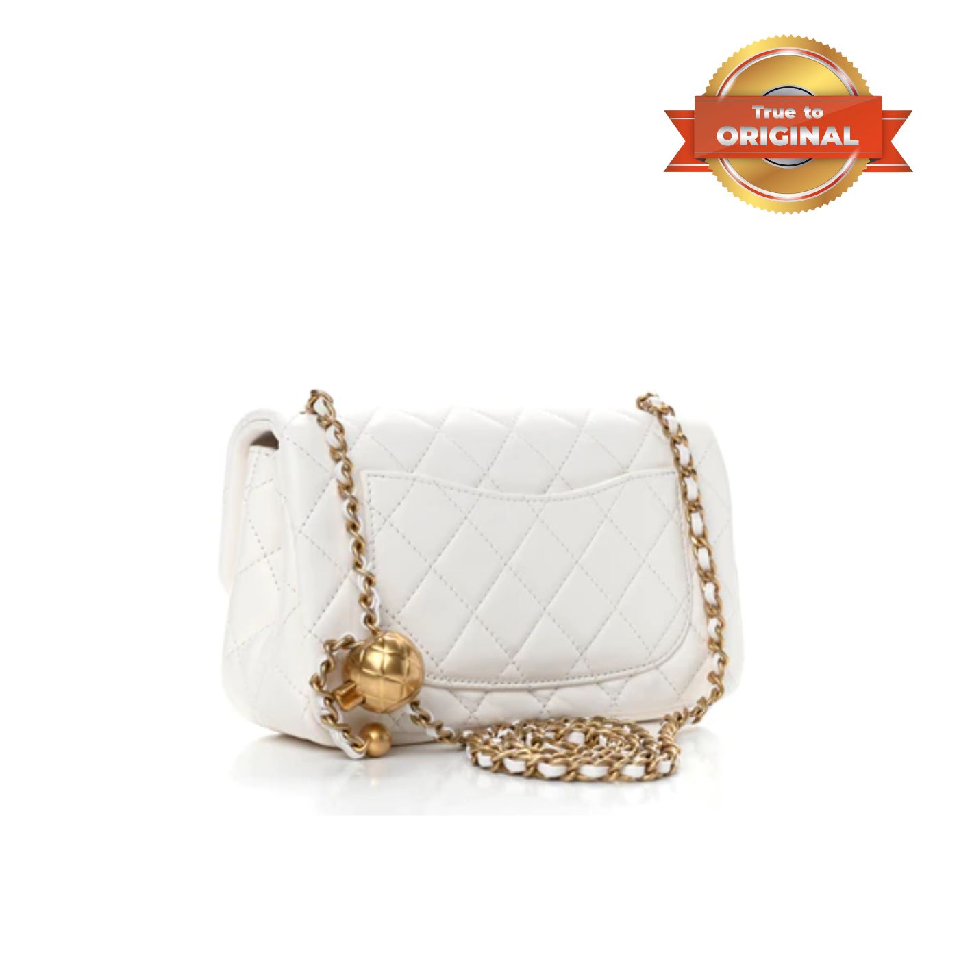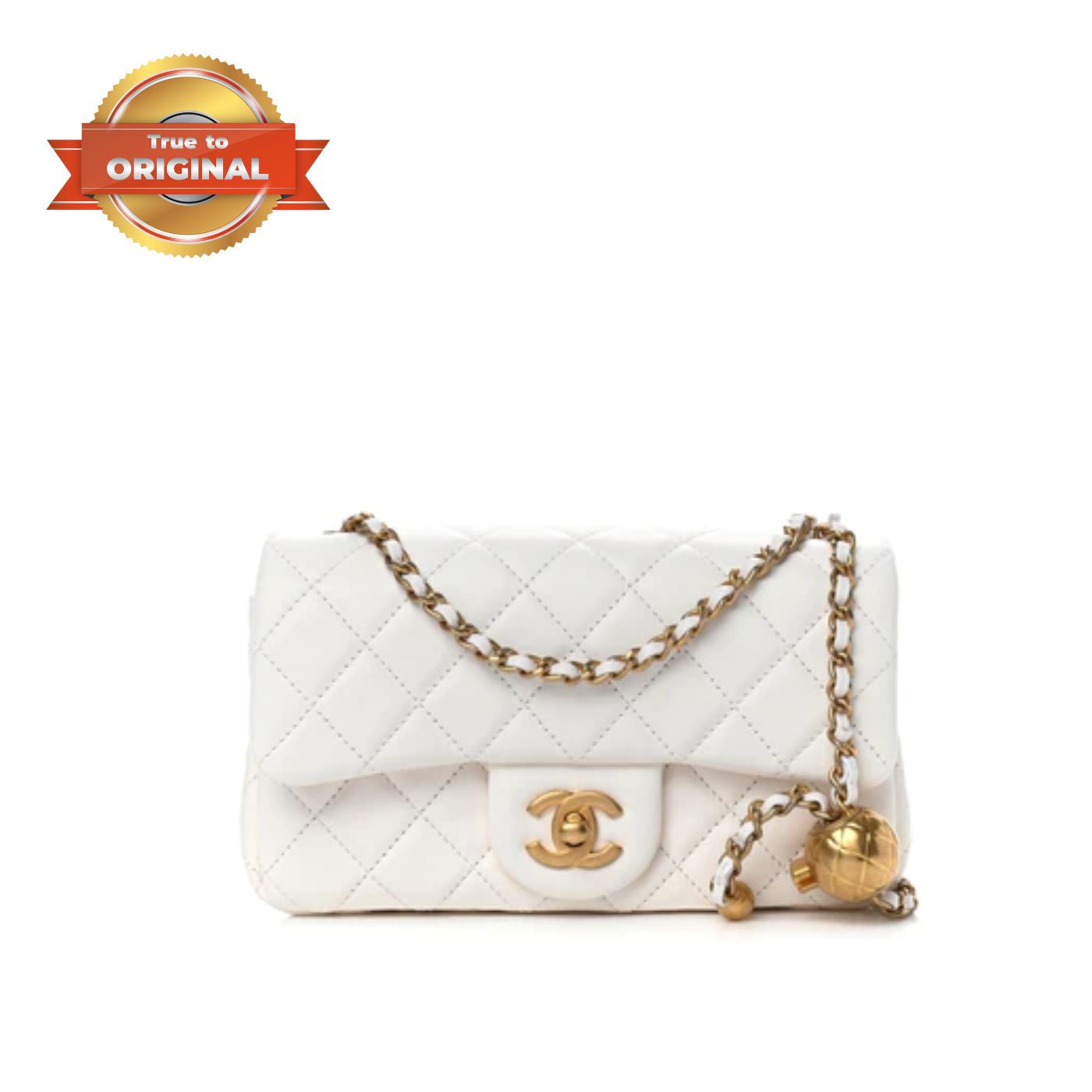 True to OriginalChanel Flap Bag With CC Ball On Strap White For Women 7.8in/20cm AS1787