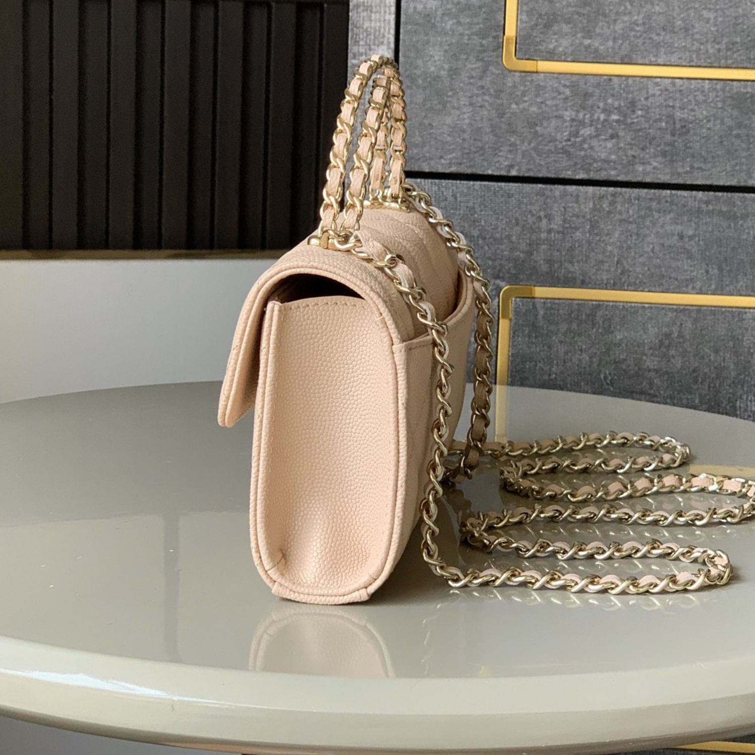 [True-to-ORIGINAL] Chanel Flap Phone Holder With Chain Light Apricot For Women 18cm/7.1in