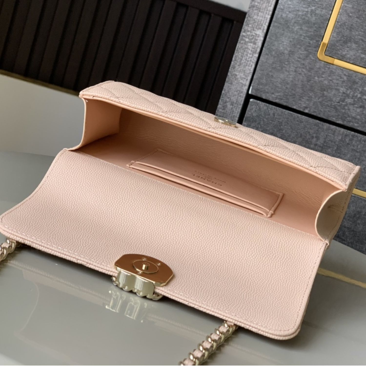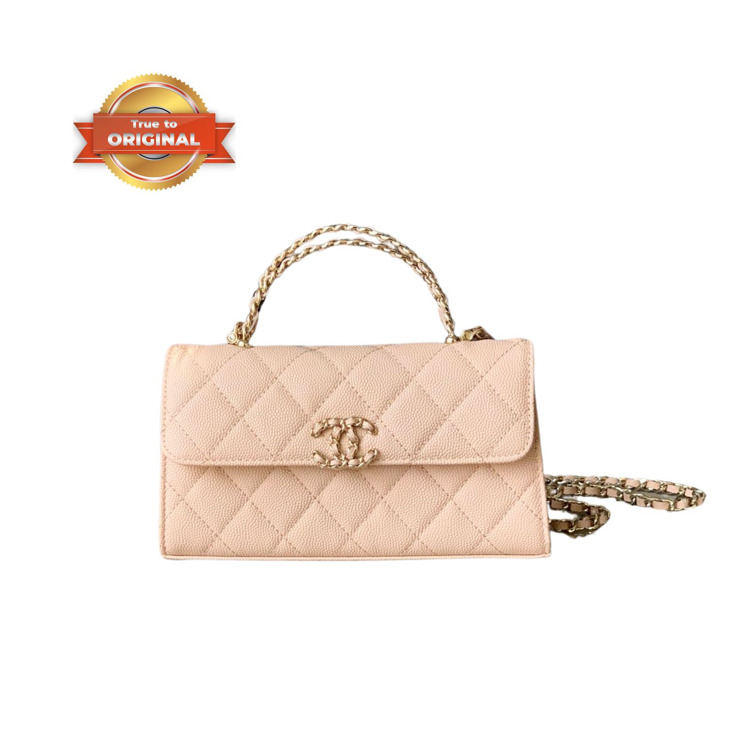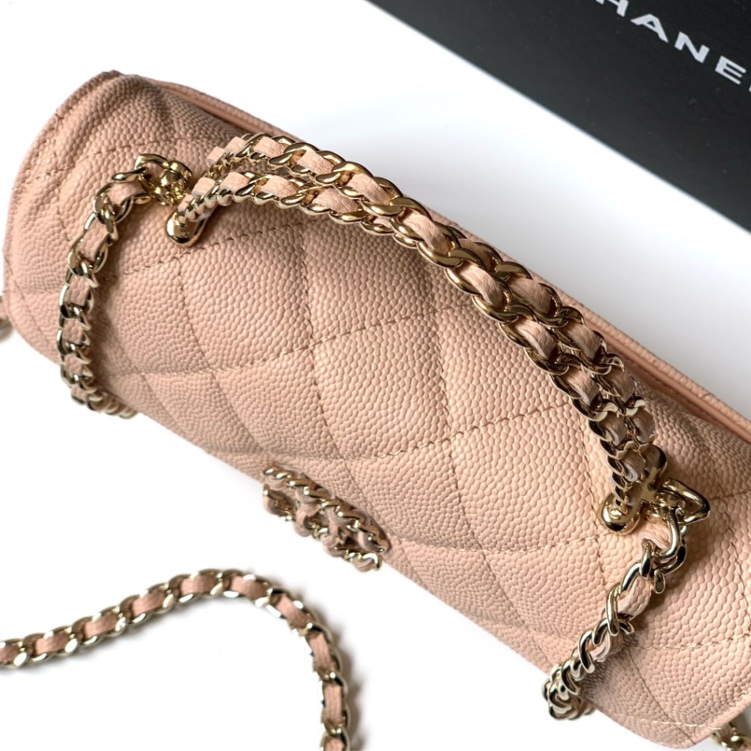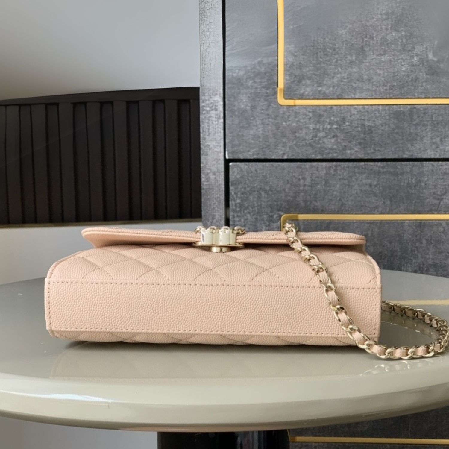 True to OriginalChanel Flap Phone Holder With Chain Light Apricot For Women 18cm/7.1in