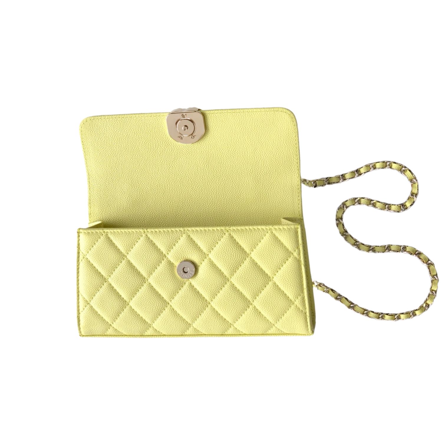 [True-to-ORIGINAL] Chanel Flap Phone Holder With Chain Yellow For Women 18cm/7.1in