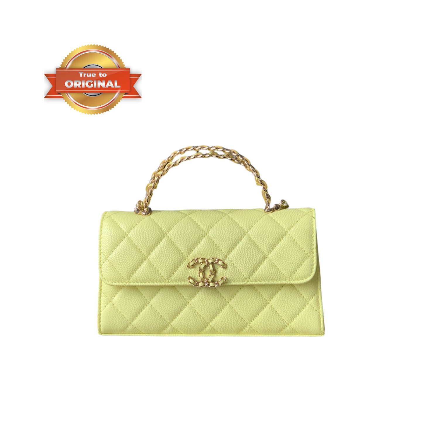 True to OriginalChanel Flap Phone Holder With Chain Yellow For Women 18cm/7.1in