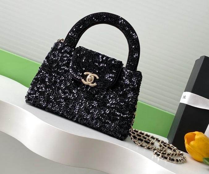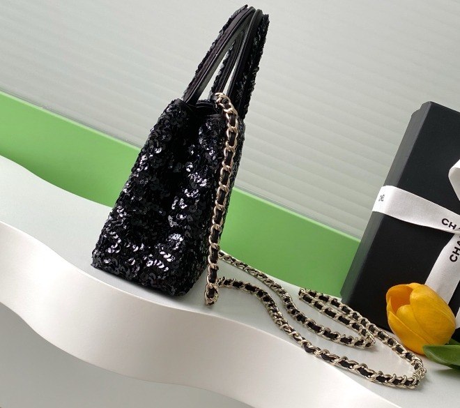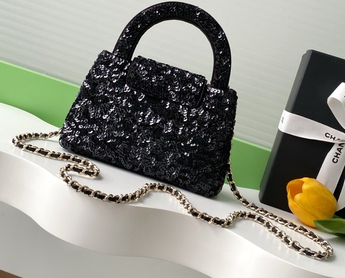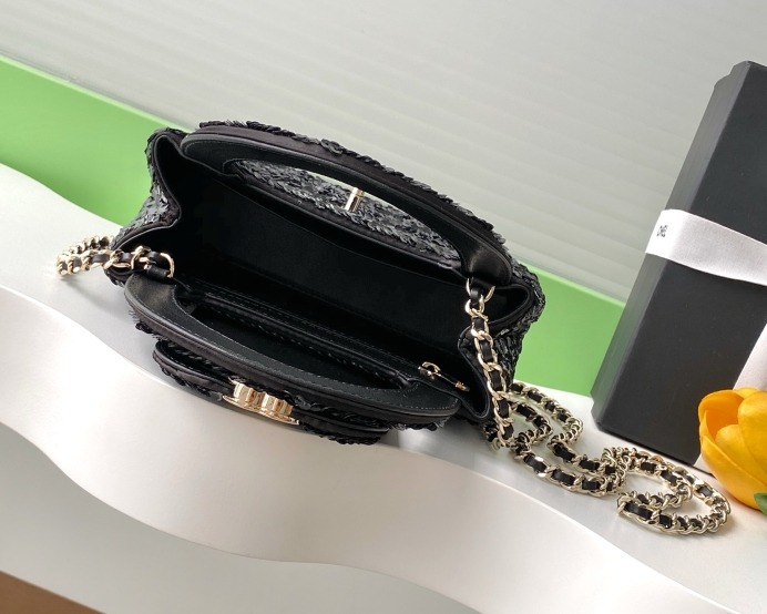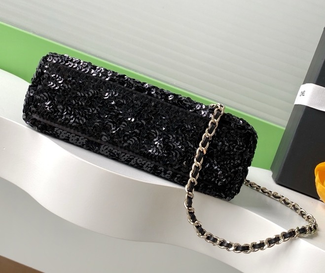 Chanel Kelly Sequin Bag Black For Women 7.8in/19cm