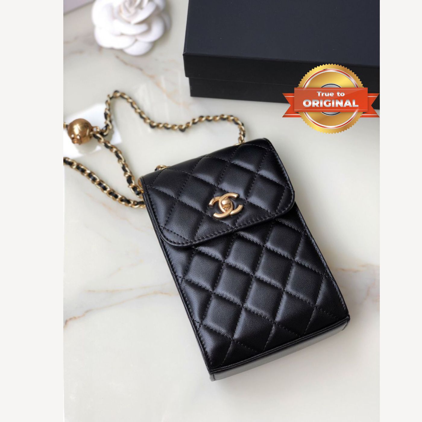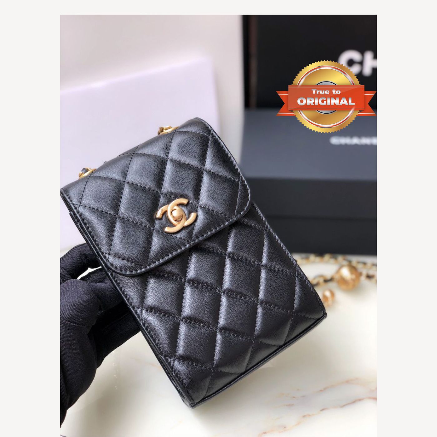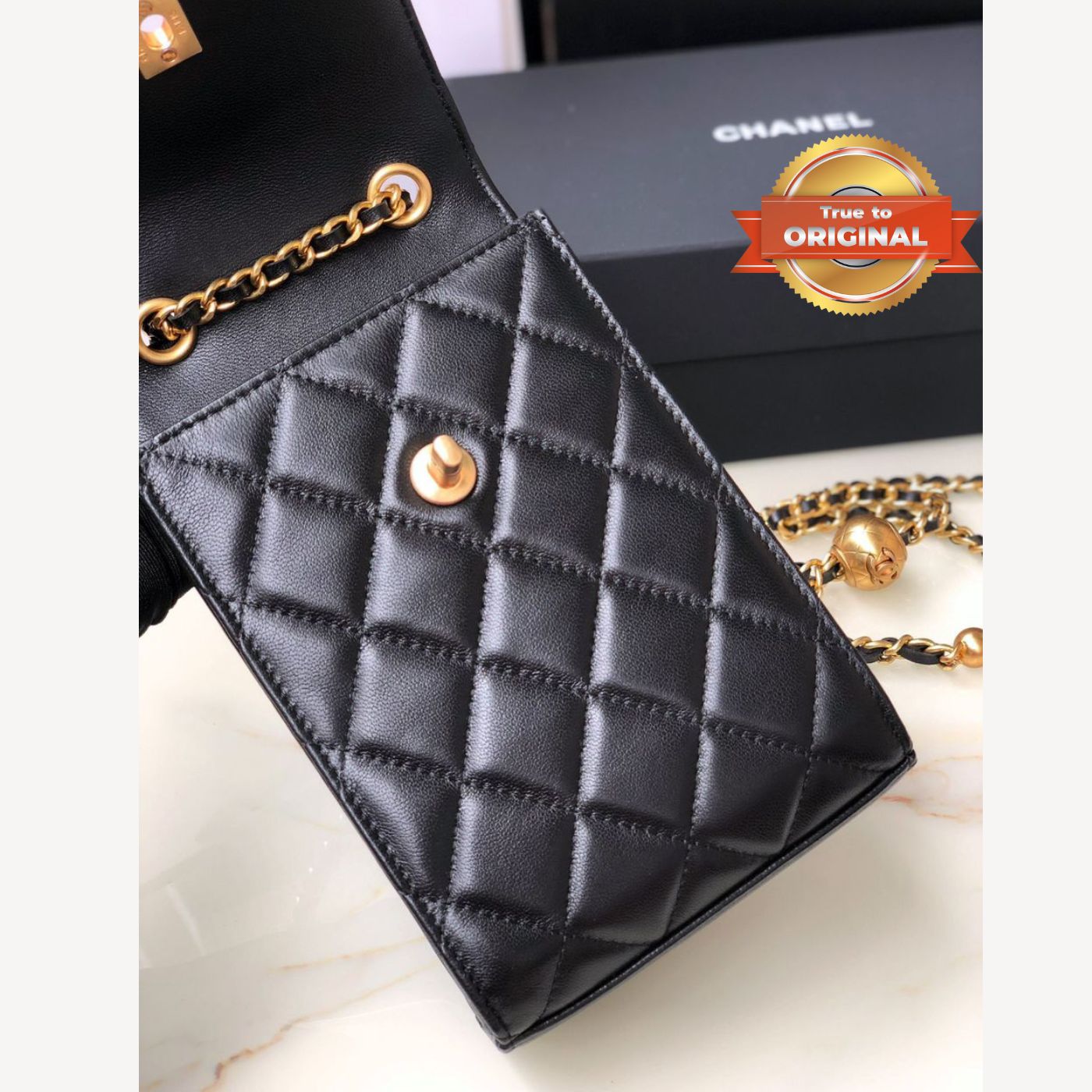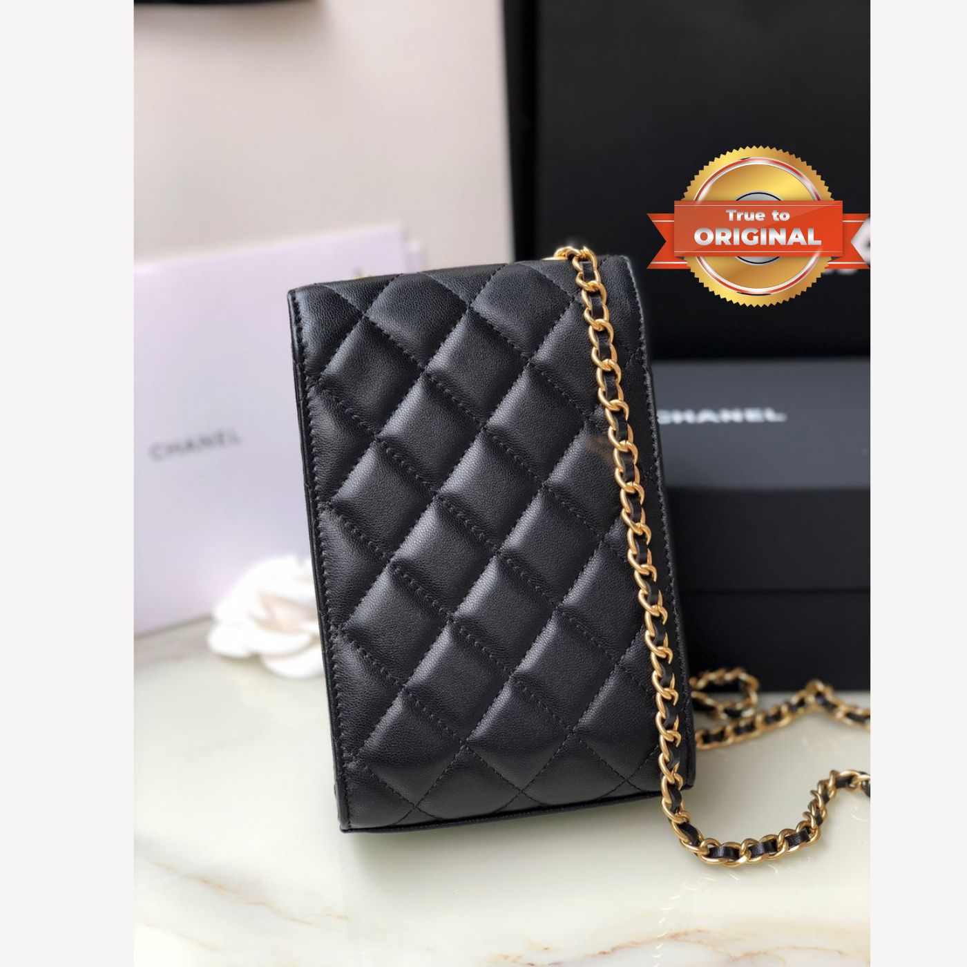 True to OriginalChanel Quilted Phone Holder Bag Black For Women 19cm/7.4in