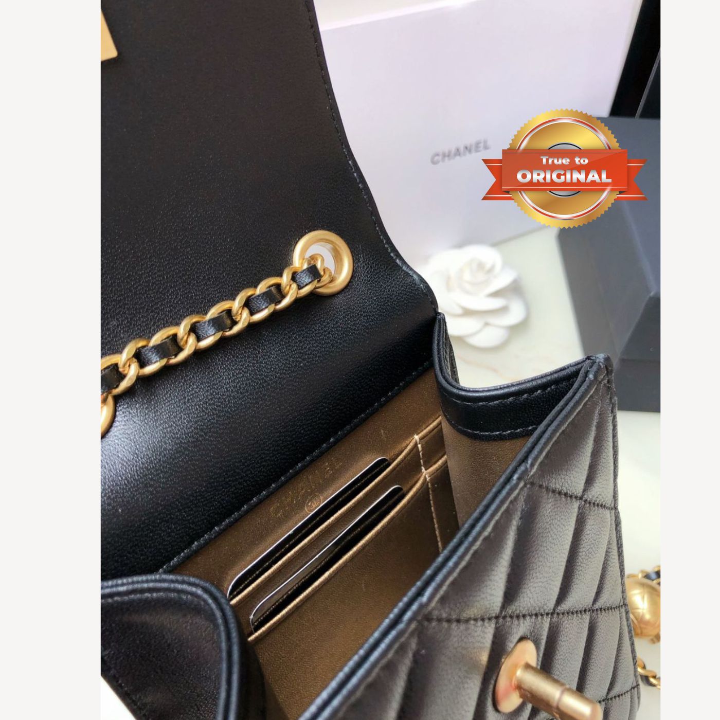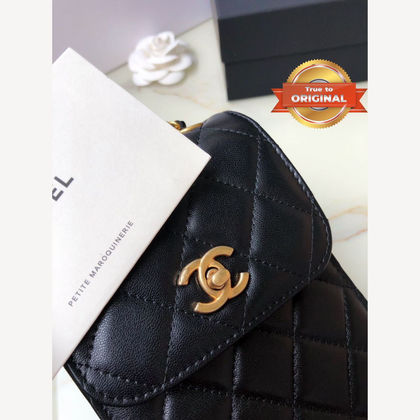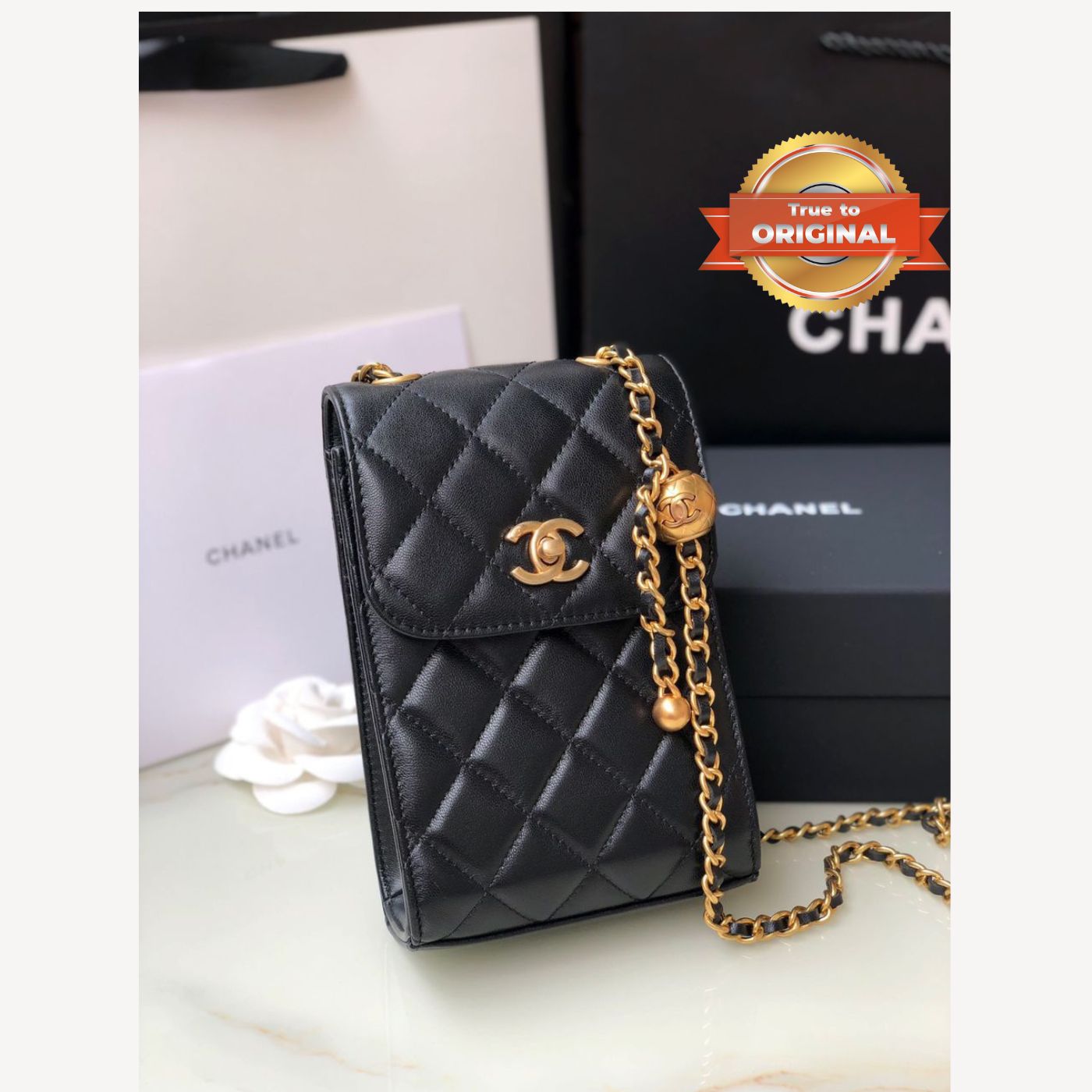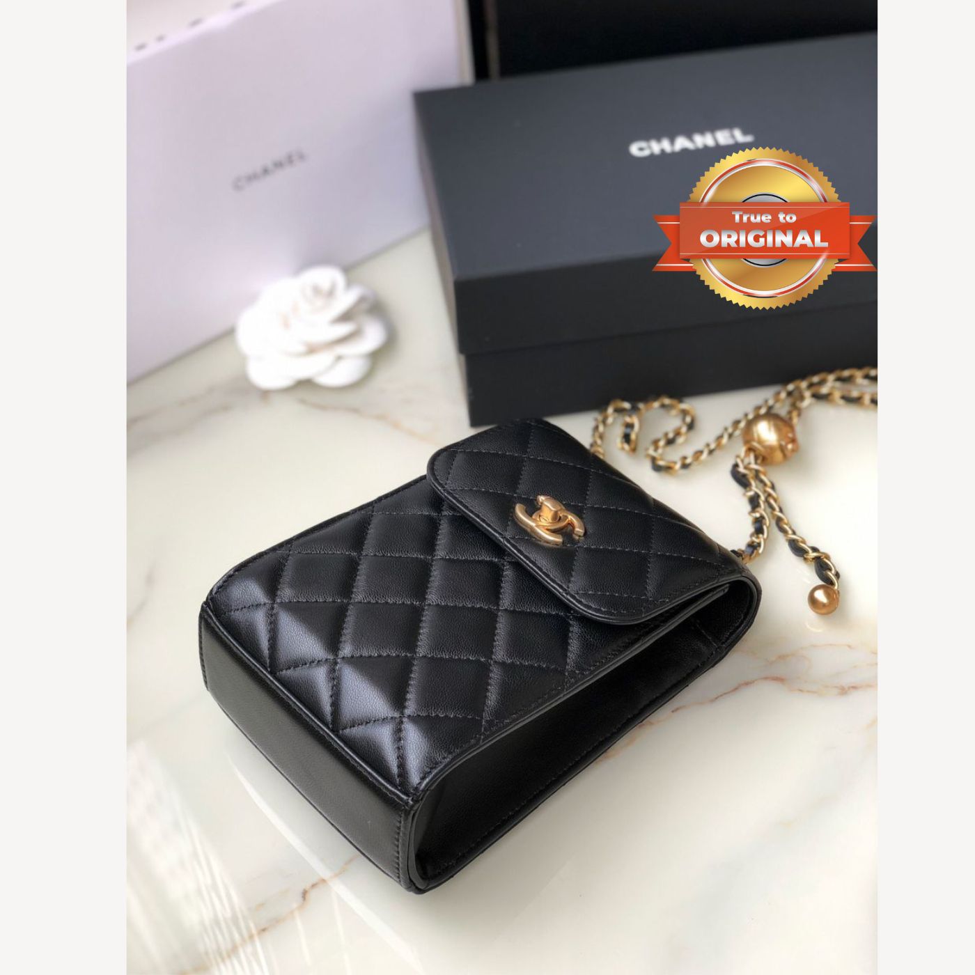 True to OriginalChanel Quilted Phone Holder Bag Black For Women 19cm/7.4in
