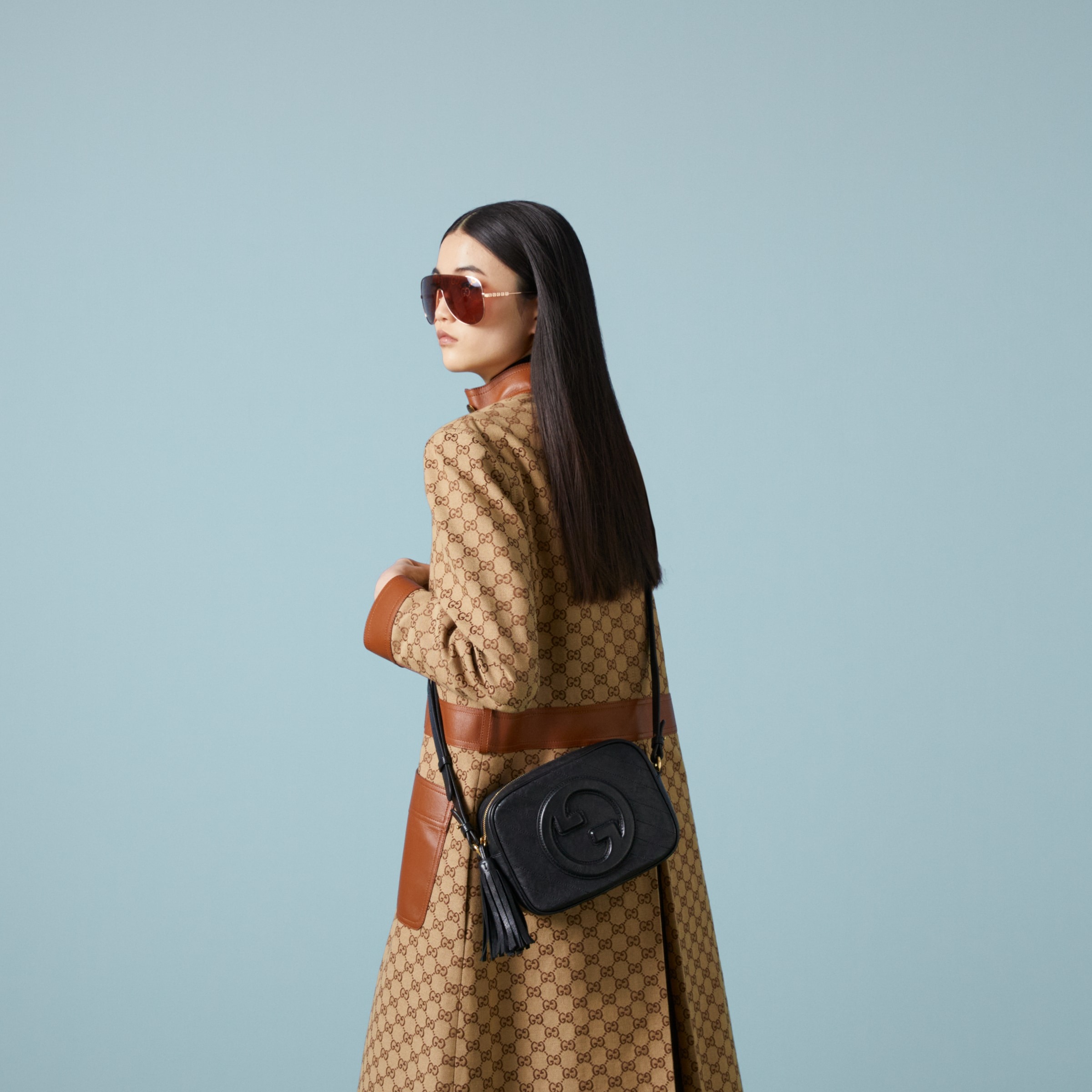 The Round Interlocking G that characterizes the Gucci Blondie line originates from the House archives. Signature pieces such as this Gucci Blondie shoulder and crossbody bag reinterpret the emblem as a subtler leather patch detail.