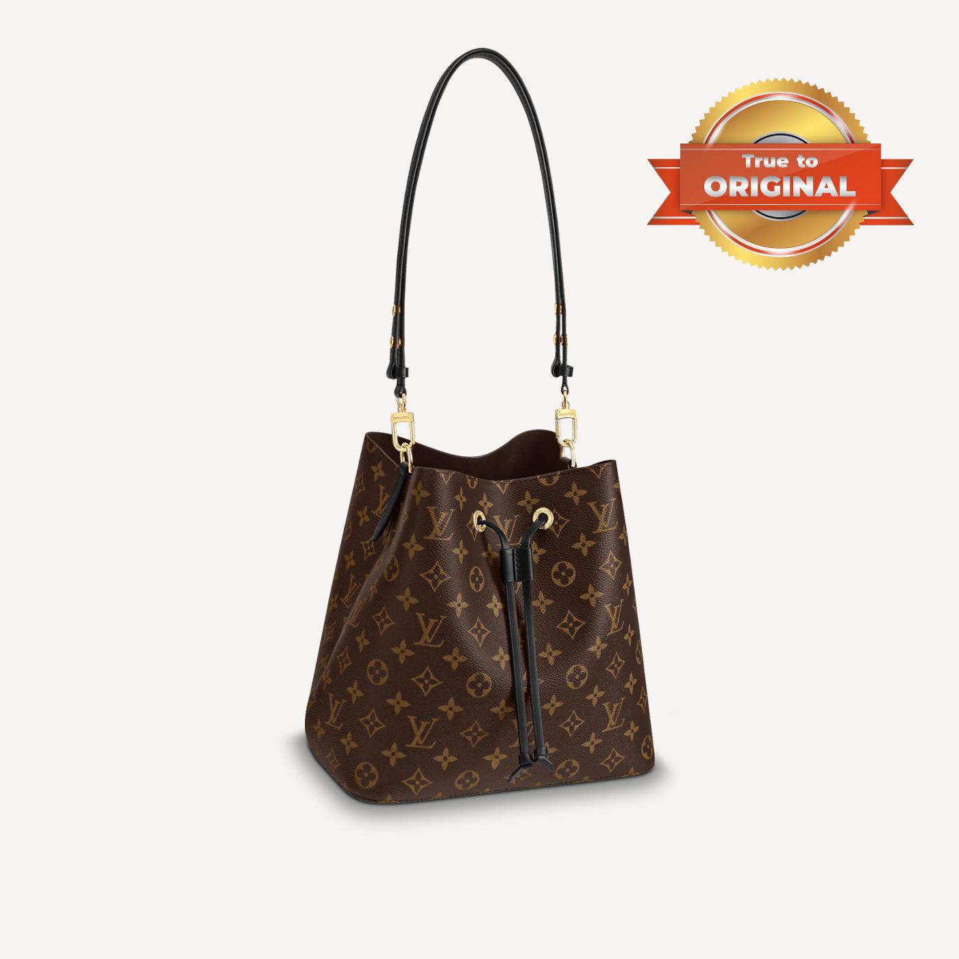 • A true House icon, the NéoNoé bucket bag revisits a 1932 design by Gaston-Louis Vuitton. The original was created to transport bottles of Champagne in style; this modern version in Monogram canvas features a sleek shape, colorful trim and a matching bonded lining. The adjustable smart strap can be slung over the shoulder or lengthened for a trendy cross-body carry.