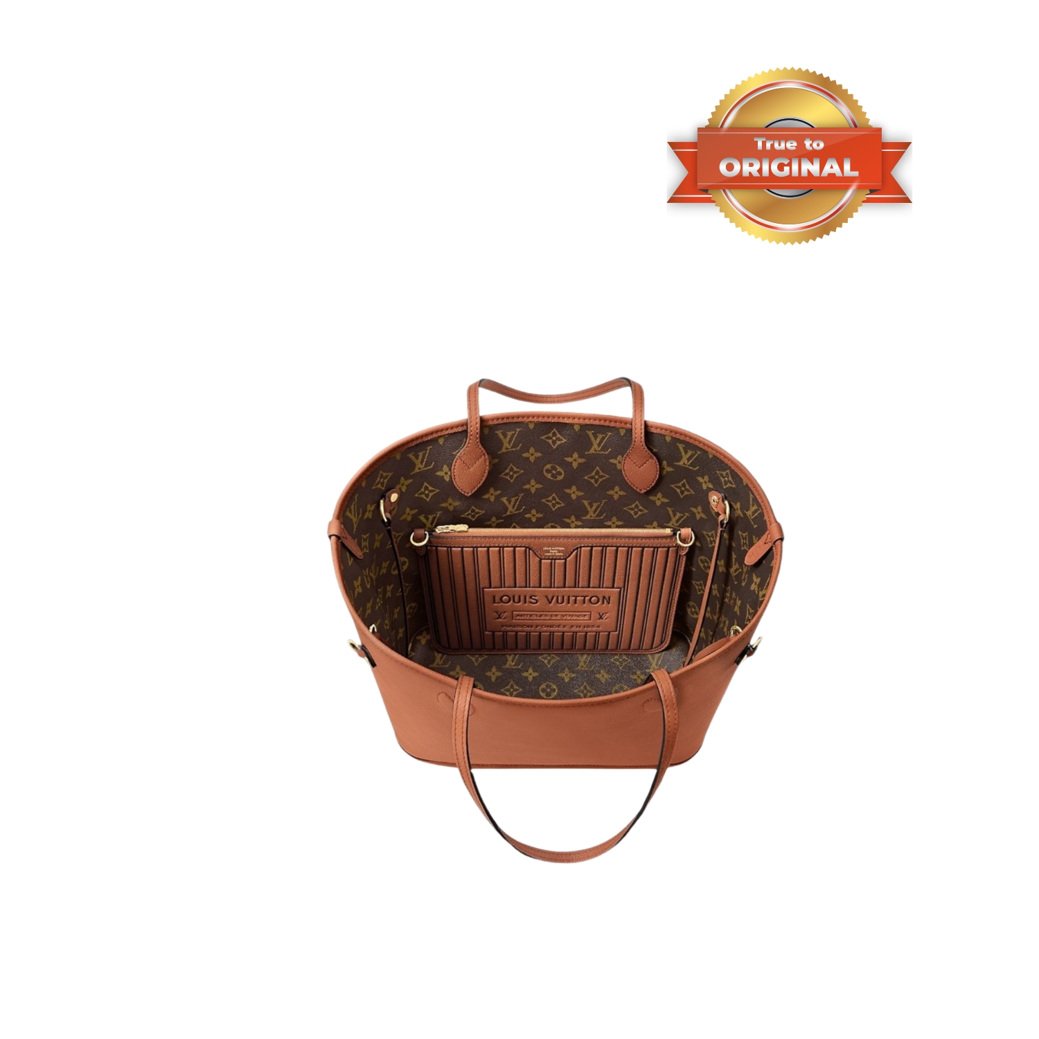 This versatile edition of the Neverfull Inside Out MM showcases a new reversible design. One side is crafted from signature Monogram canvas, and the other reveals grained leather.