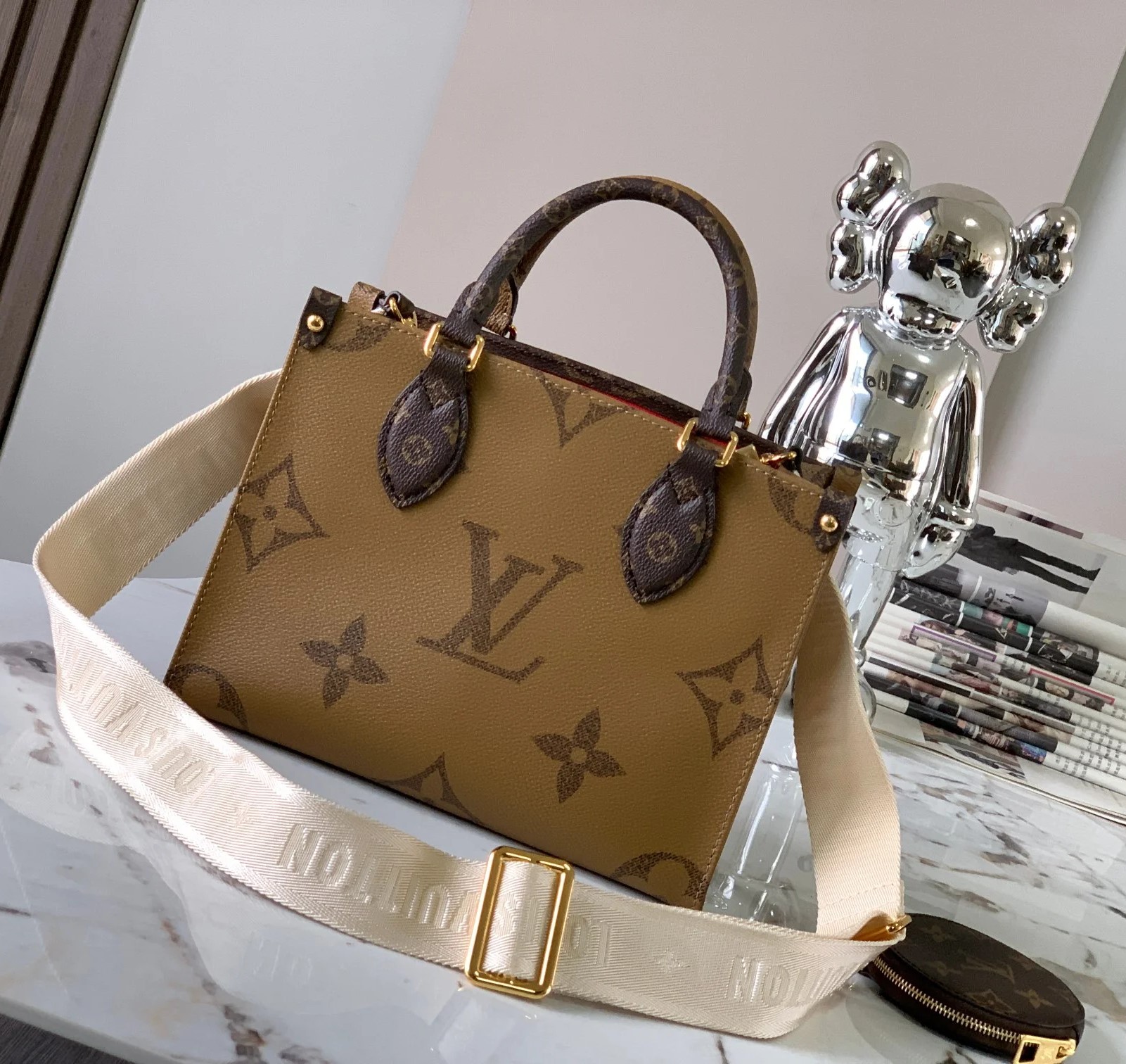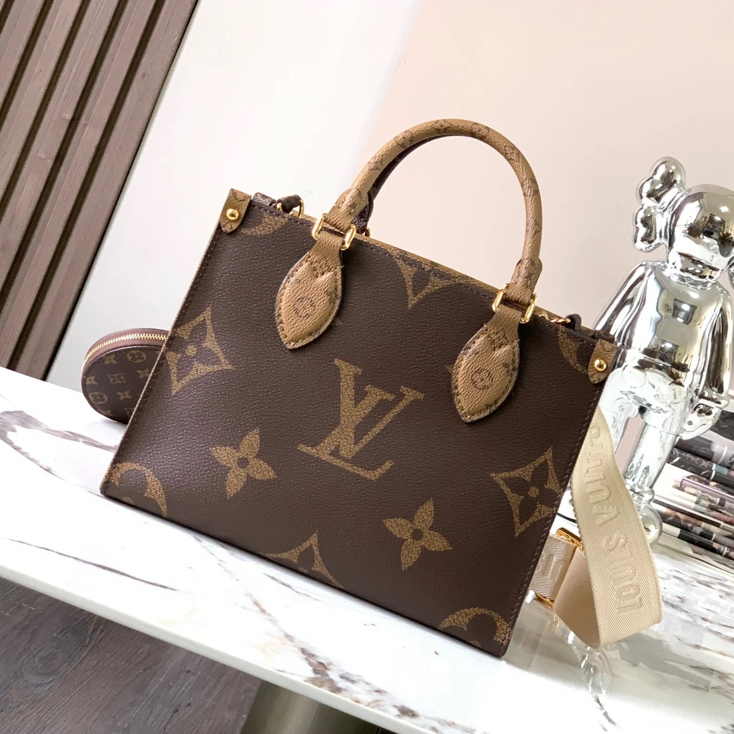 [True-to-ORIGINAL] Louis Vuitton OnTheGo PM Tote Bag Brown For Women 9.8in/25cm