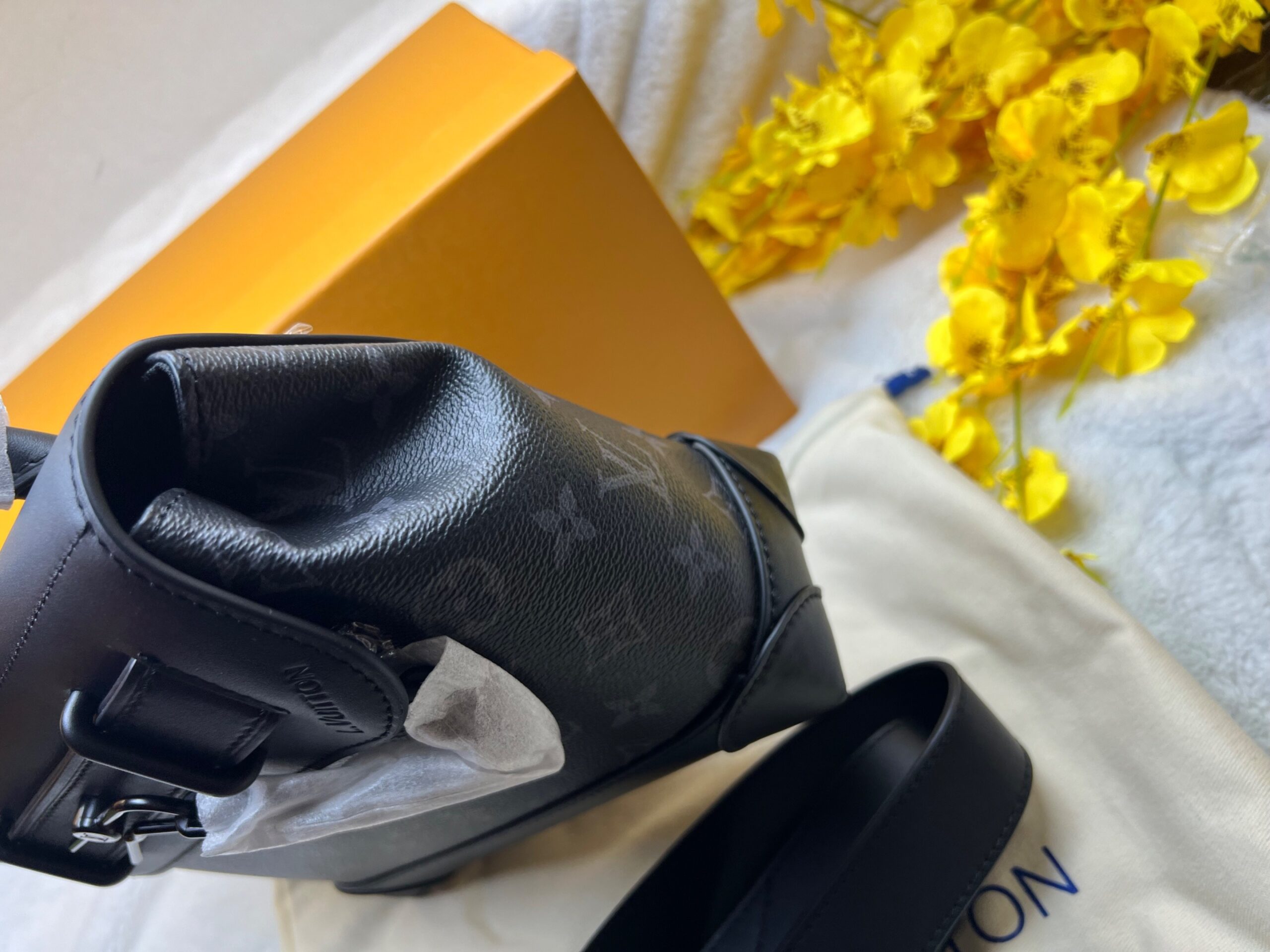 The new Steamer NM offers a distinctive combination of contemporary styling and heritage touches. Crafted in the House’s iconic Monogram Eclipse canvas, it features a host of details inspired by Louis Vuitton’s historic Steamer luggage, from the trunk-style corners to the signature chain and pin buckle.